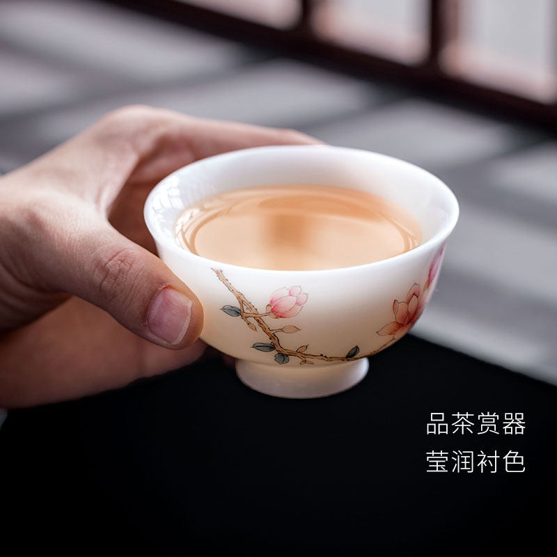 📚 高端手绘玉兰花主人杯冰种玉瓷家用中式个人专用陶瓷茶具喝茶杯女