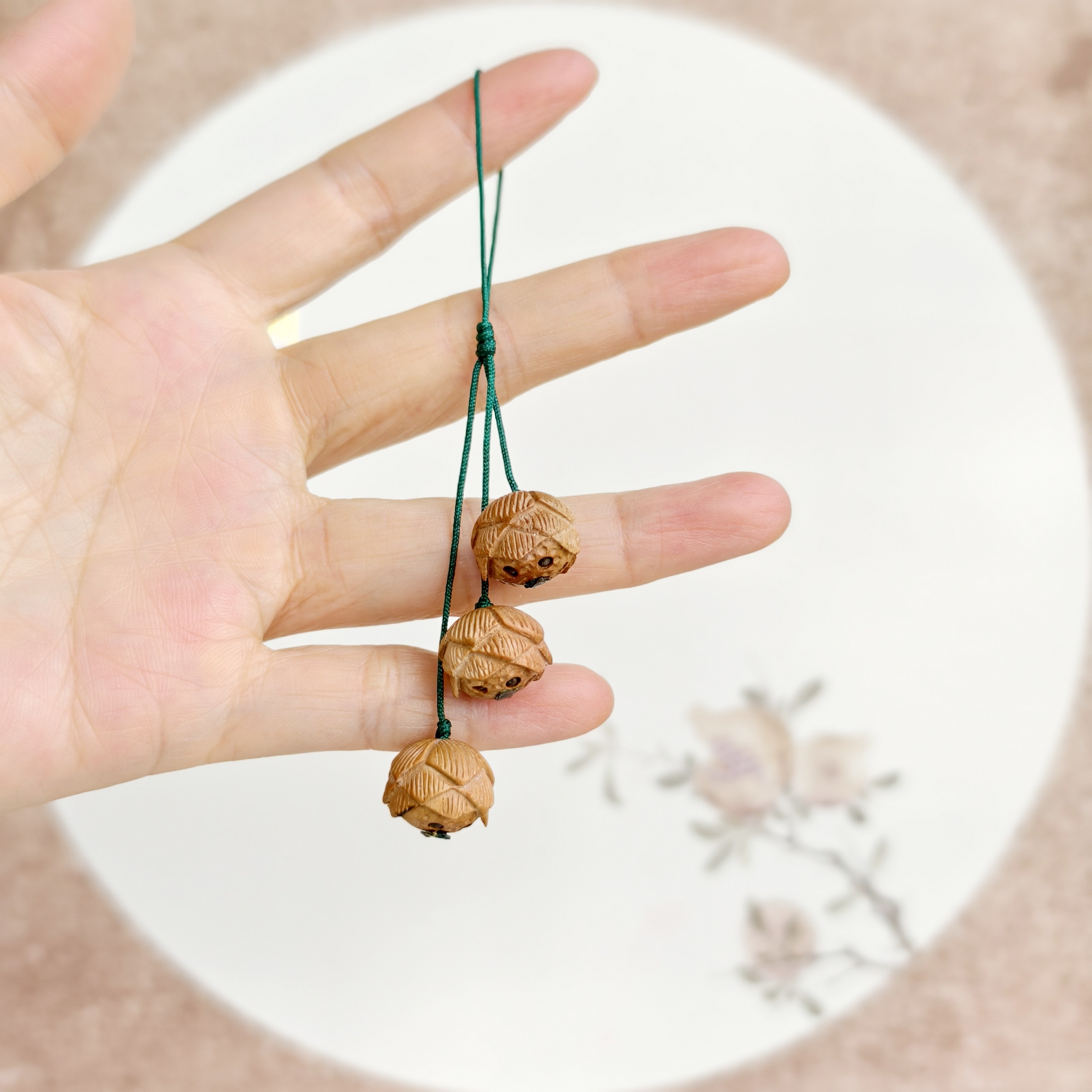 📚 原创桃木黄杨木莲蓬手机挂坠子桃花小挂件包包梳子小配件手工编绳