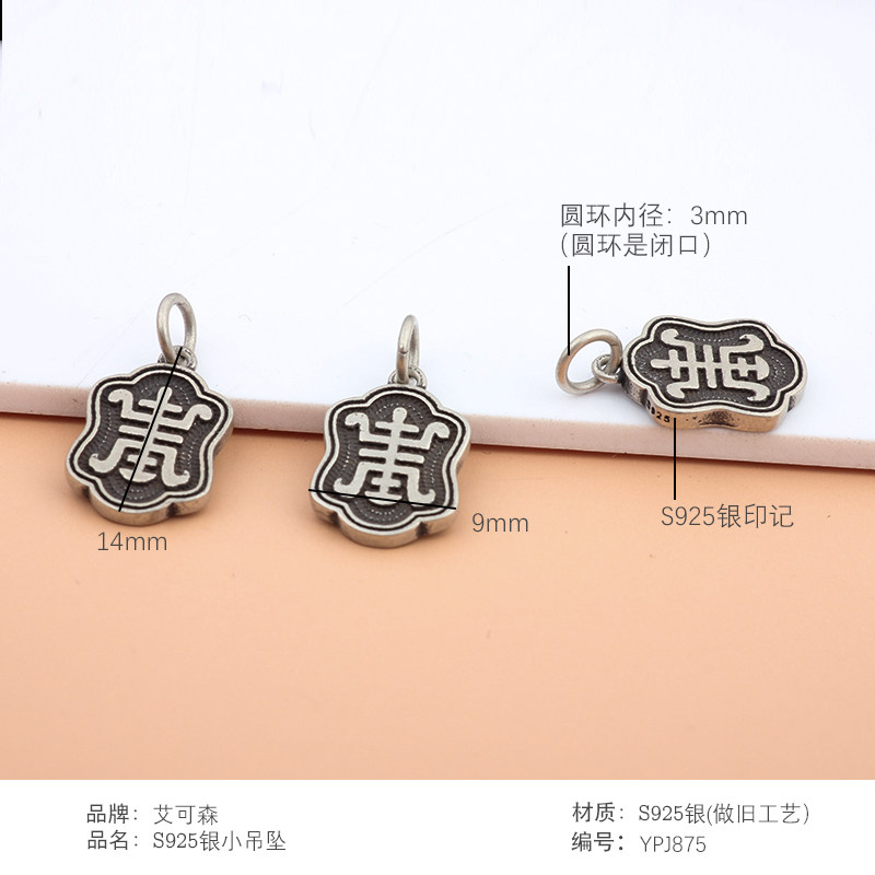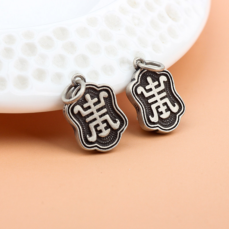 📚 S925纯银寿字吊坠子编织红绳手链脚链包包流苏小挂件古风diy配饰