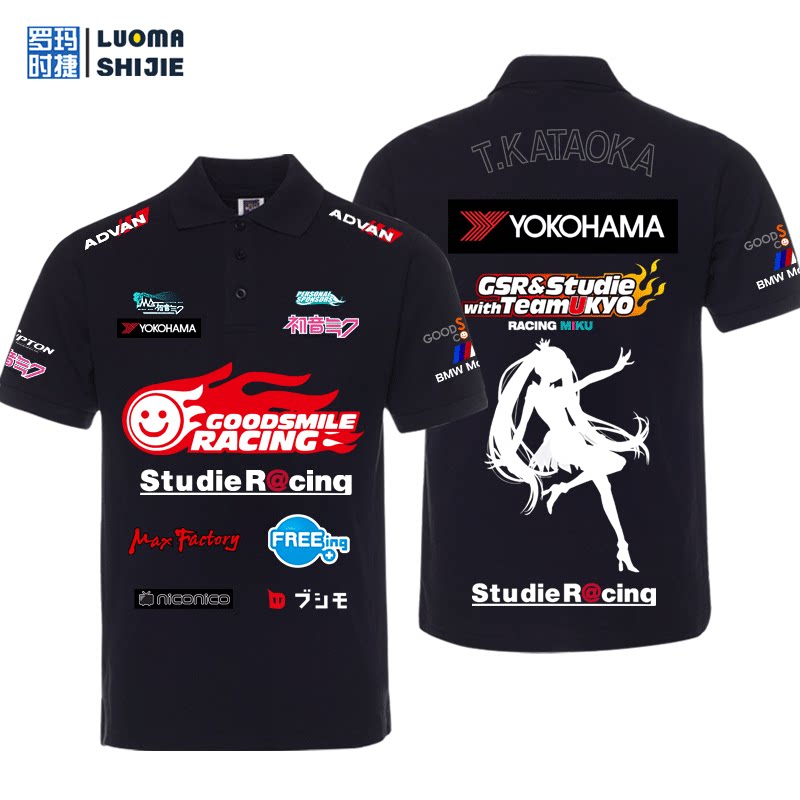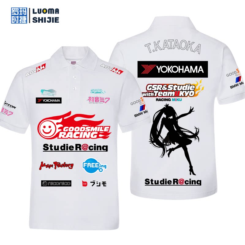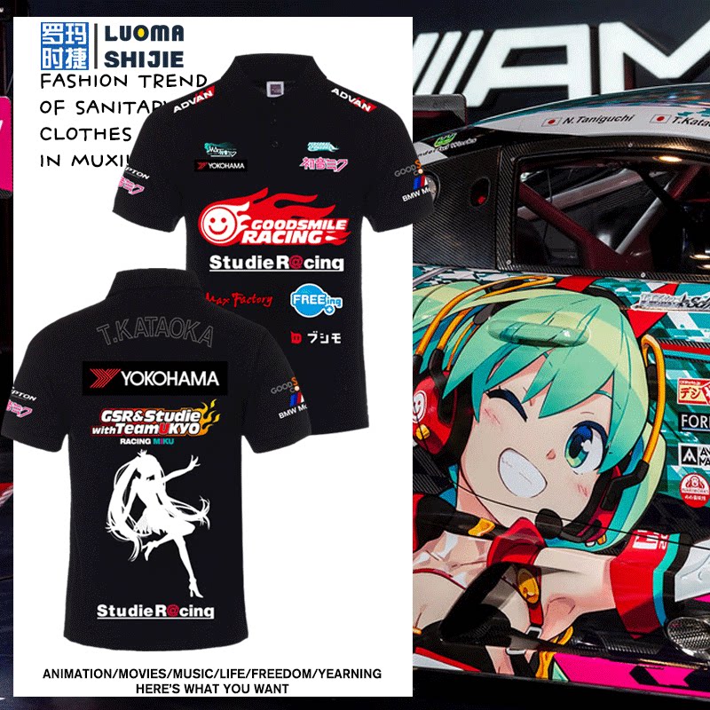 📚 GSR初音未来骑行服BMW赛车POLO衫Hatsune Miku服印花T恤短袖