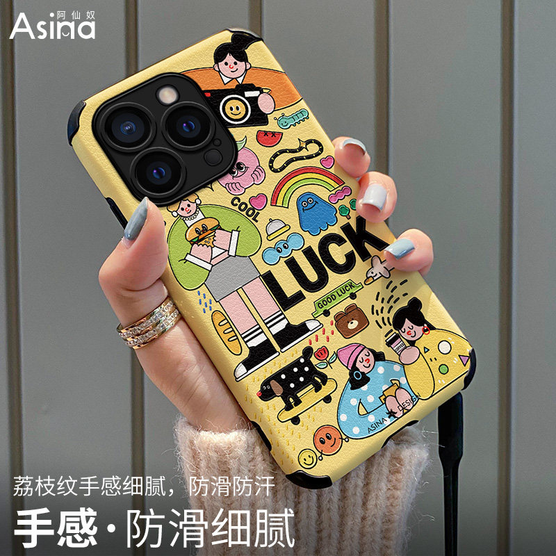 📚 阿仙奴集市插画适用苹果17Pro手机壳仿皮iPhone16Promax保护套13网红plus软全包防摔15pm女创意ip14新款小众