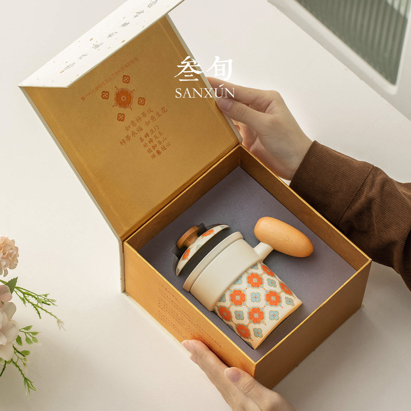 📚 叁旬柿柿如意陶瓷马克杯子家用喝水带盖泡茶杯办公室创意定制礼品