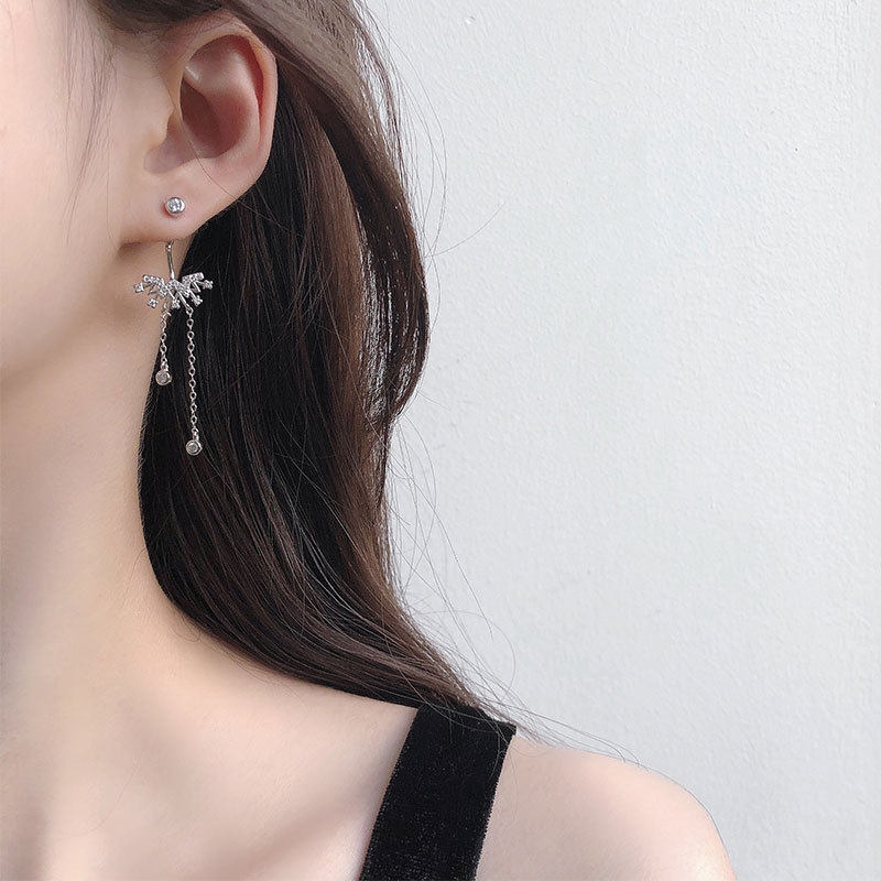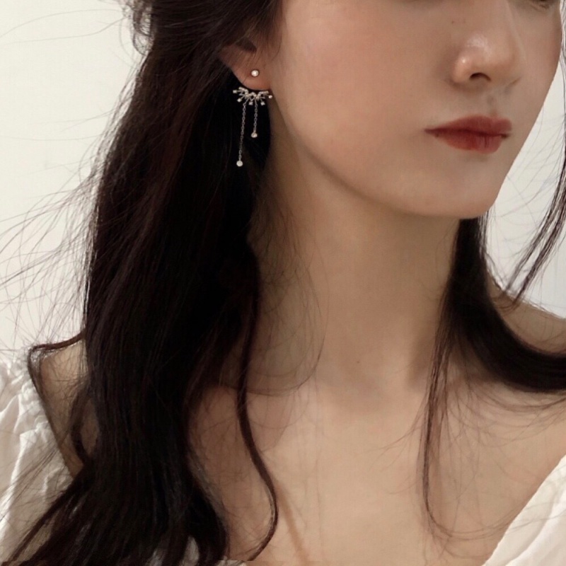 📚 srrmhyn银色超仙耳钉银镶钻不对称耳环2023新款夏季小众耳坠挂饰