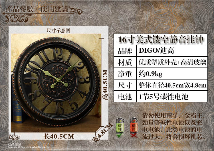 📚 美式时钟欧式复古挂钟客厅艺术静音挂表古典仿古钟表大气家用创意