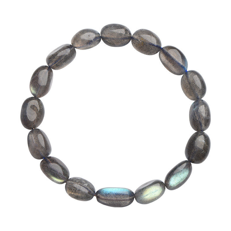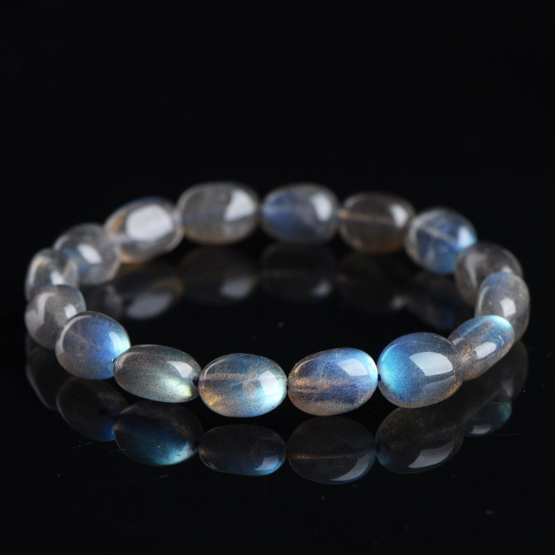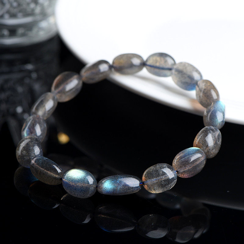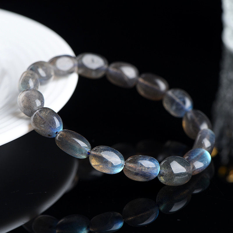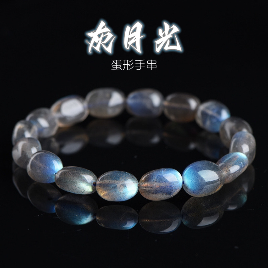 📚 天然黑体灰月光彩光拉长石随形蛋形手串手链男女