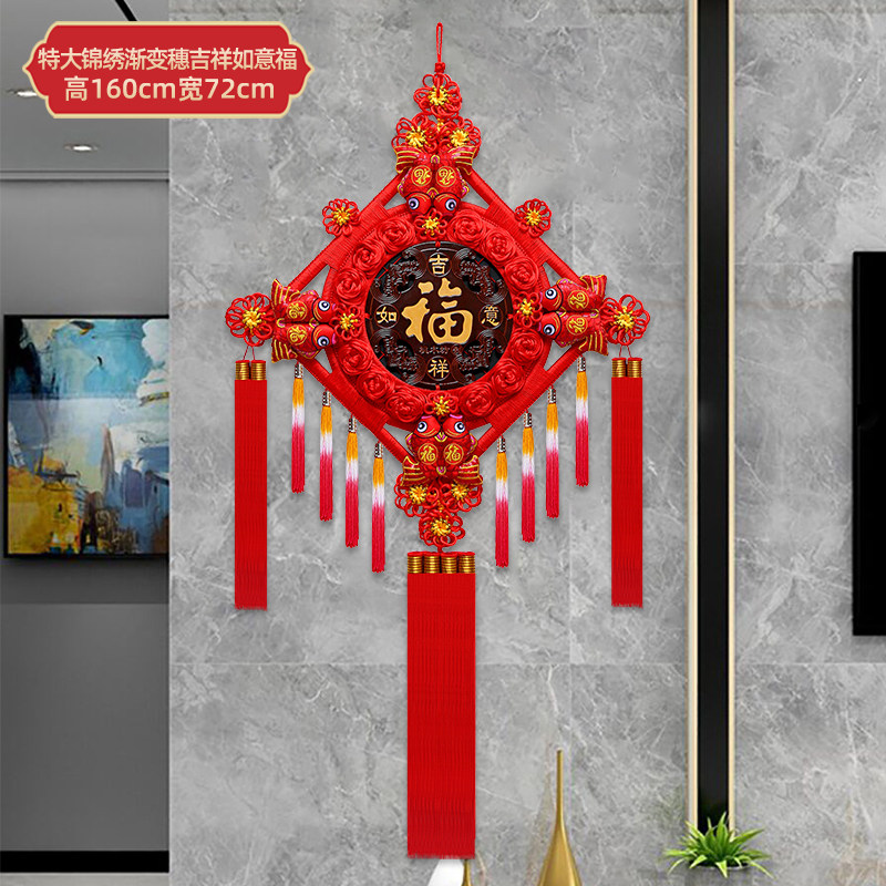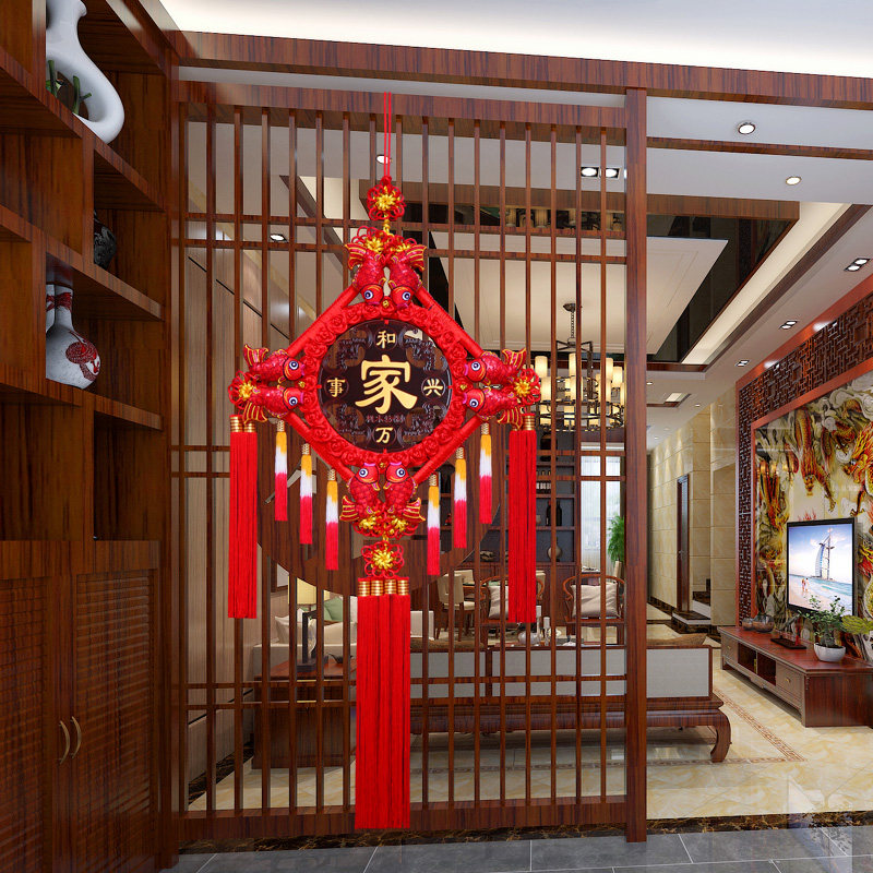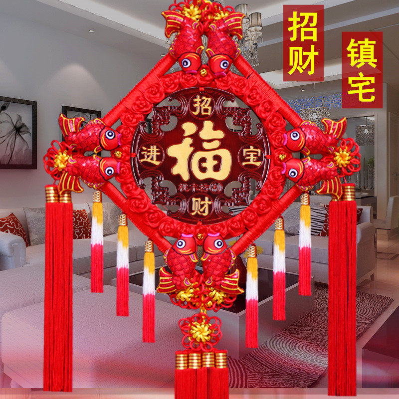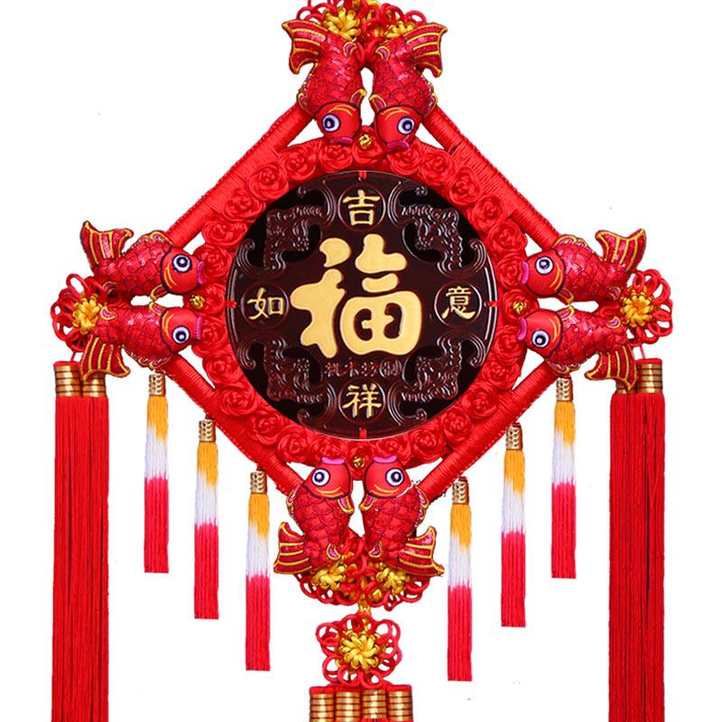 📚 大号高档真桃木中国结挂件新中式客厅高端入户玄关福挂饰装饰福字