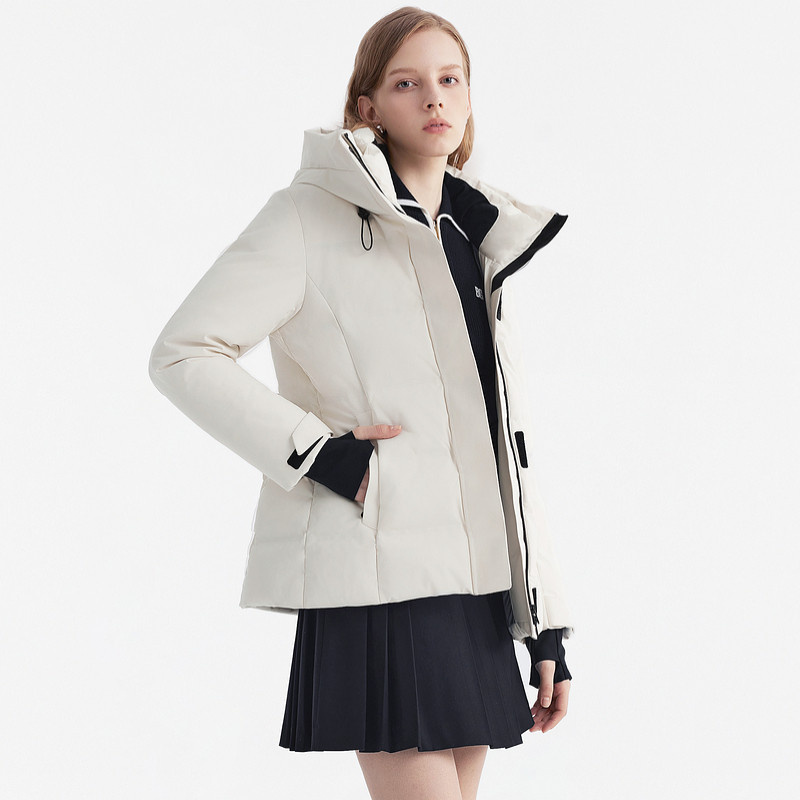 📚 【90白鹅绒】比音勒芬冬季新款女士腰带收腰休闲连帽羽绒服外套