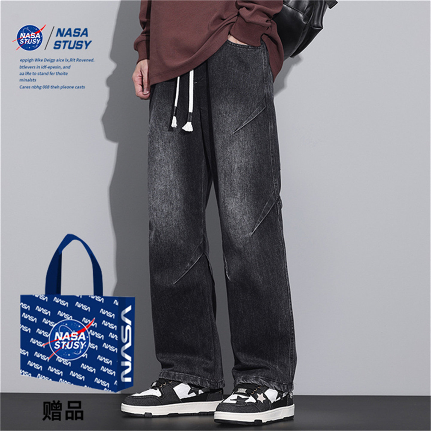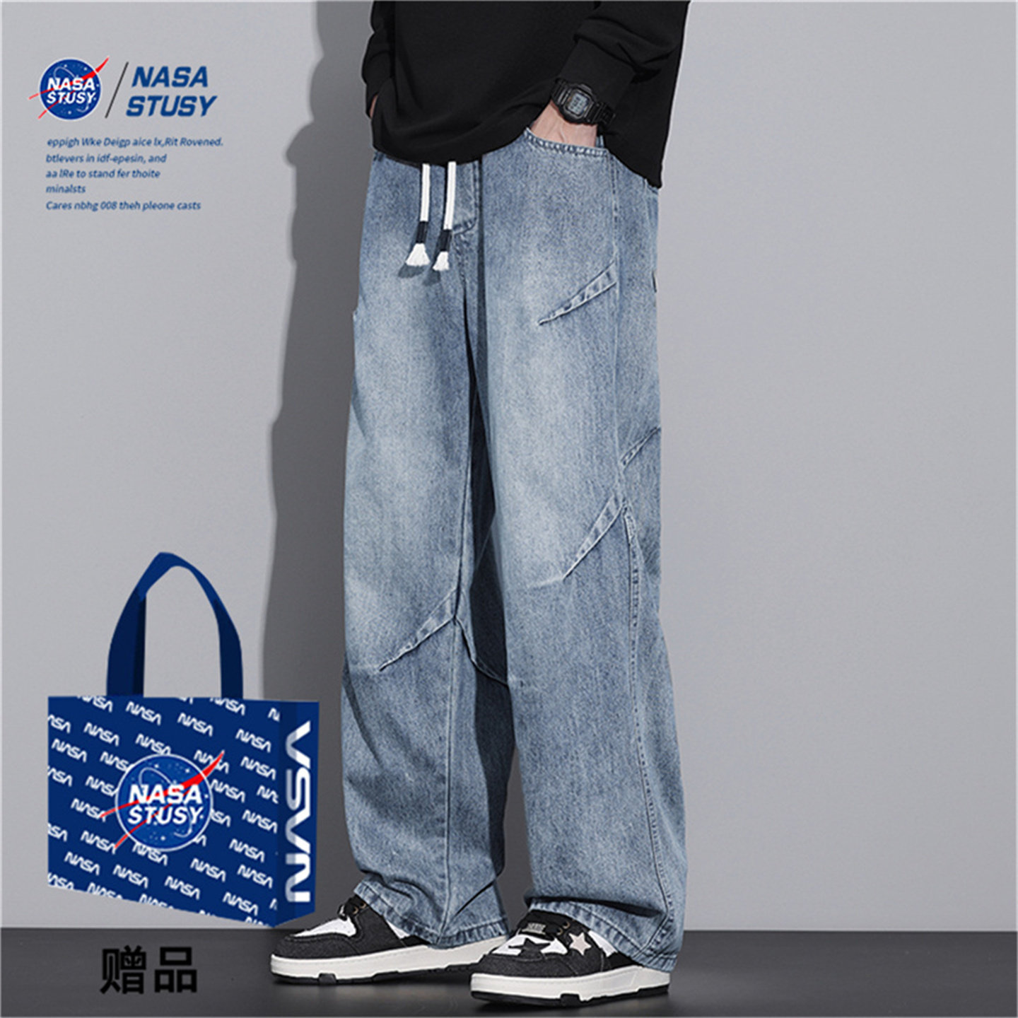 📚 NASA STUSY美式高街2026新款秋装宽松直筒牛仔裤男款休闲长裤子