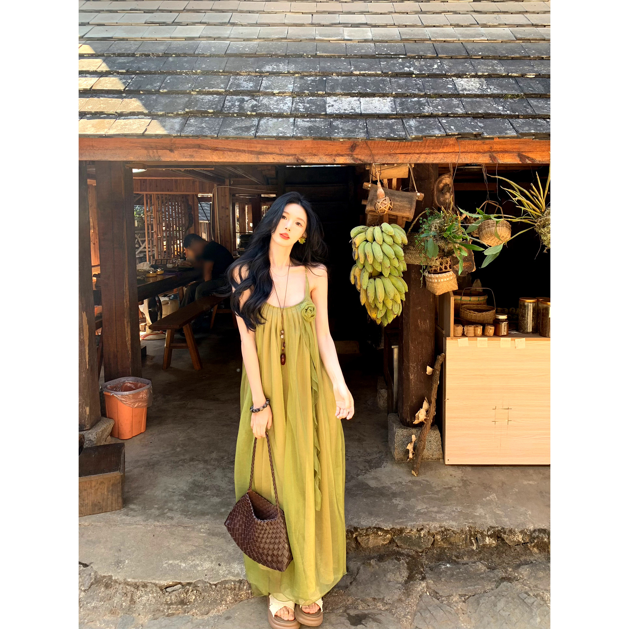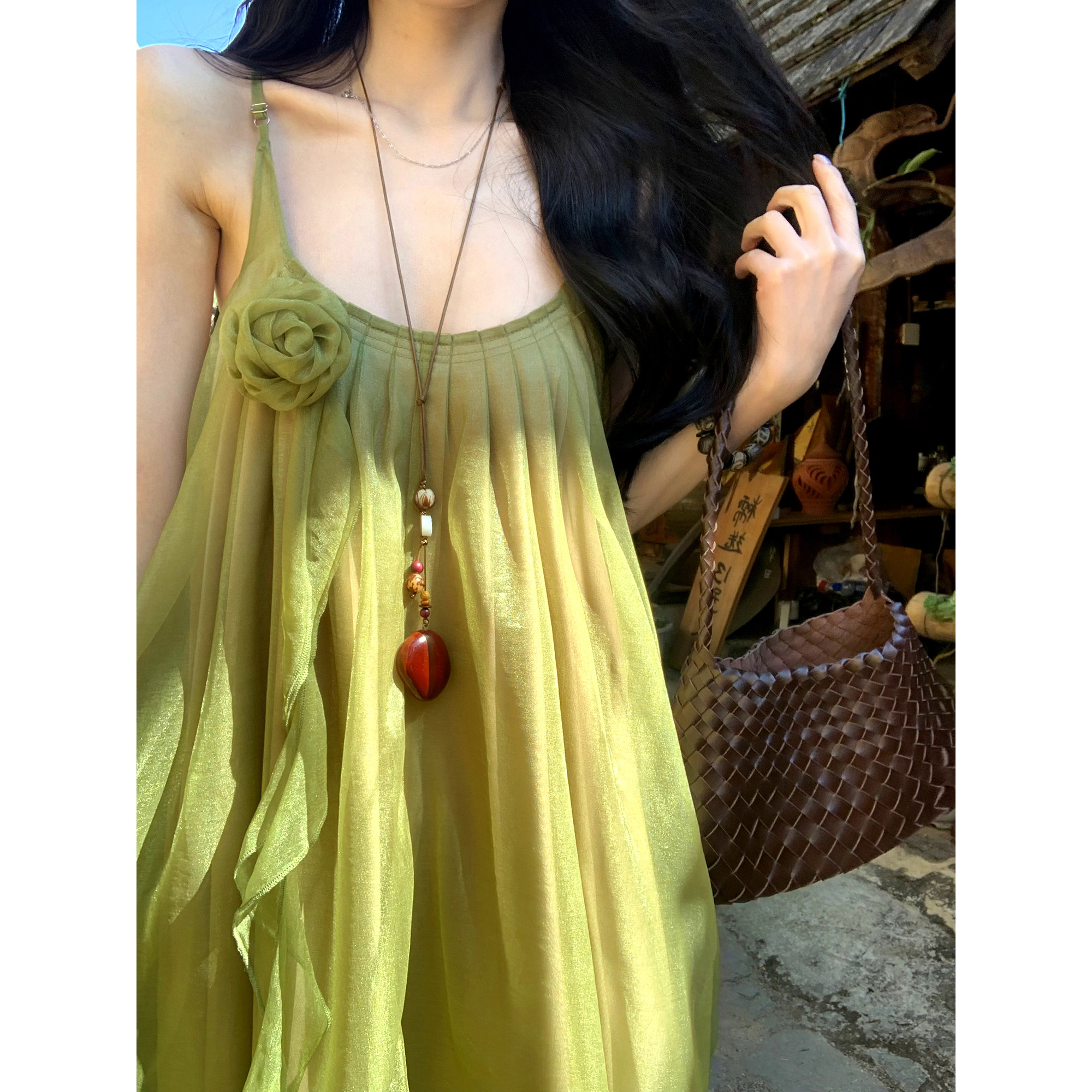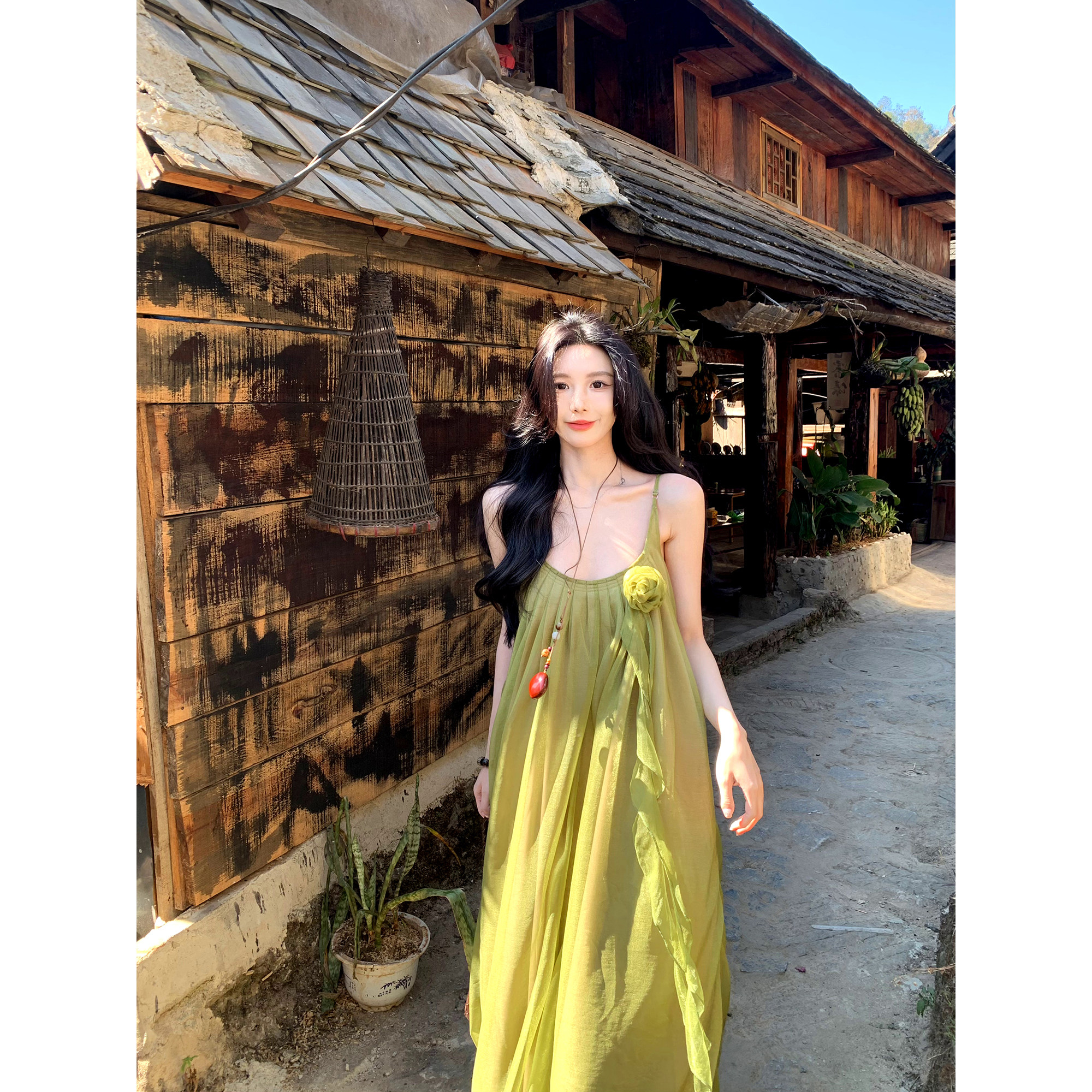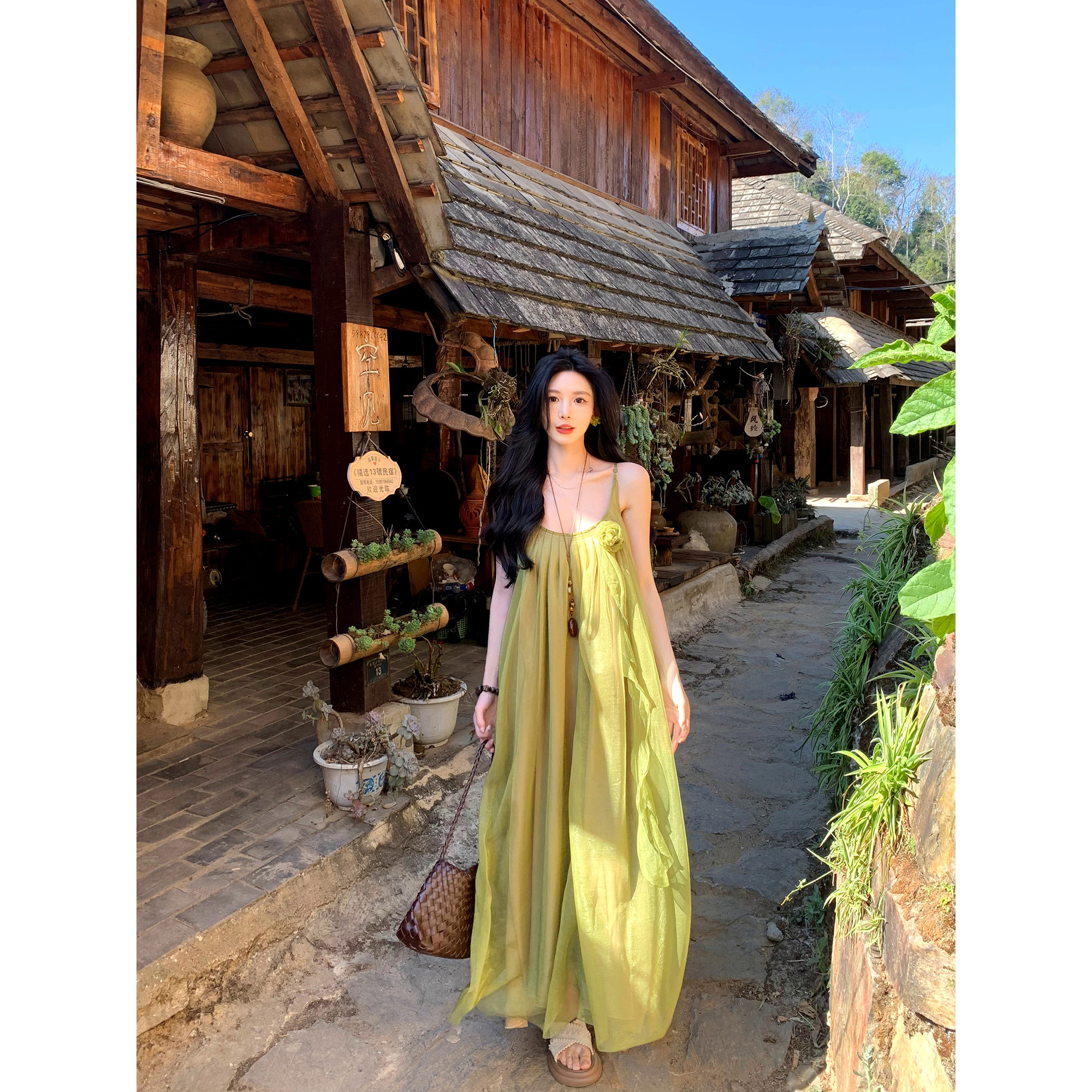 📚 一颗甜桃yikett《千寻绿野》夏季吊带连衣裙女显瘦气质连身长裙