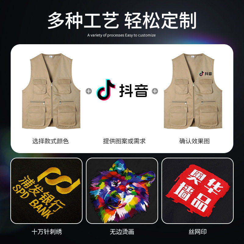 📚 摄影师马甲工作服男装户外记者剧组导演钓鱼多口袋背心印logo定制