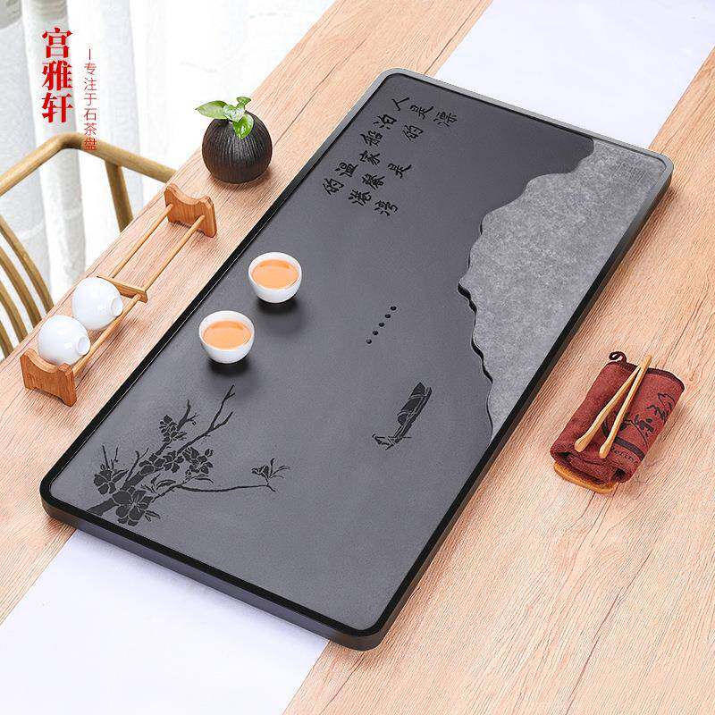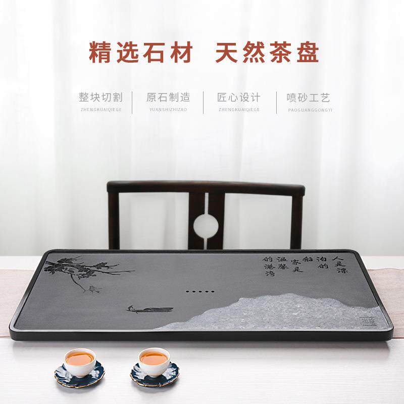 📚 乌金石茶盘手工石制家用办公中式简约茶台茶具