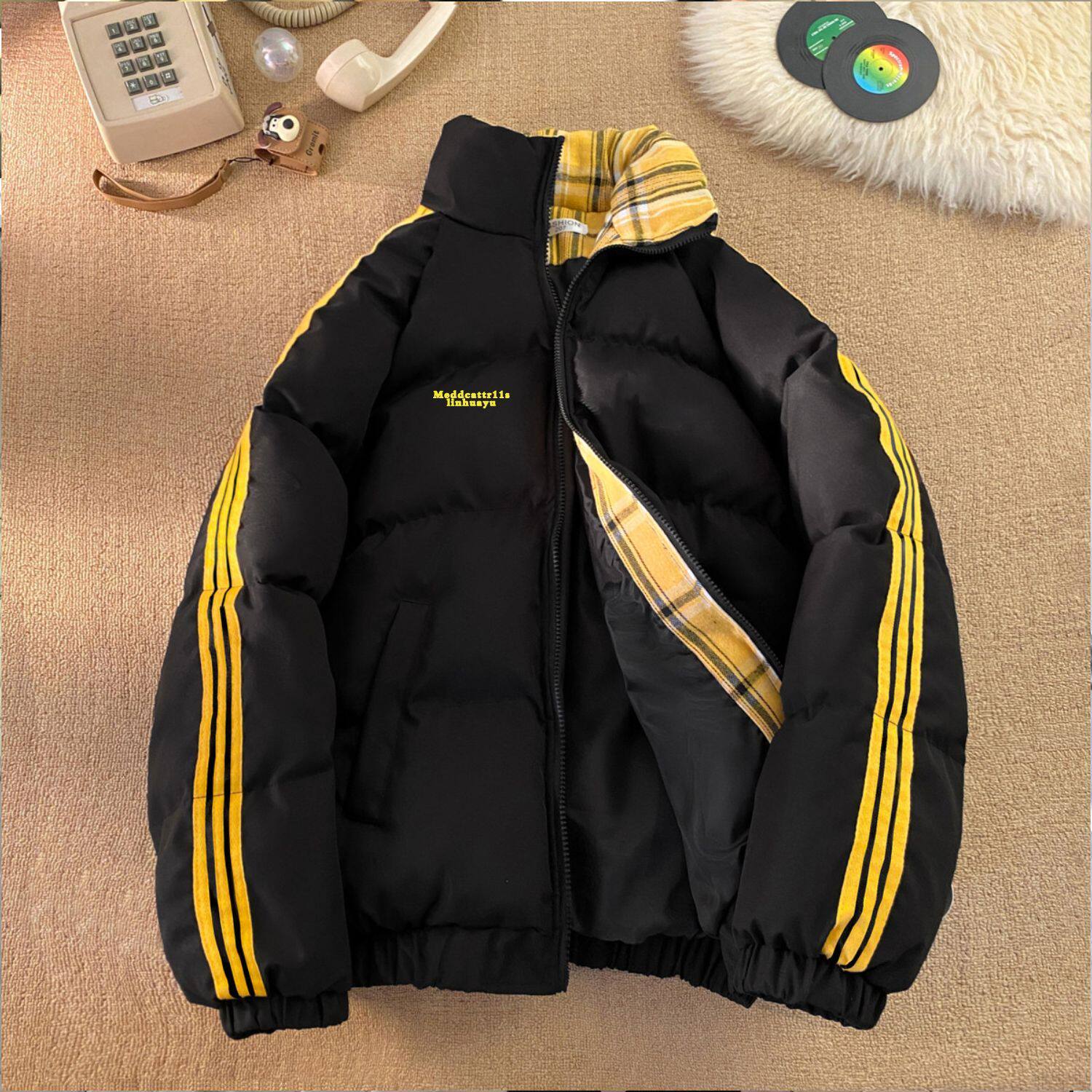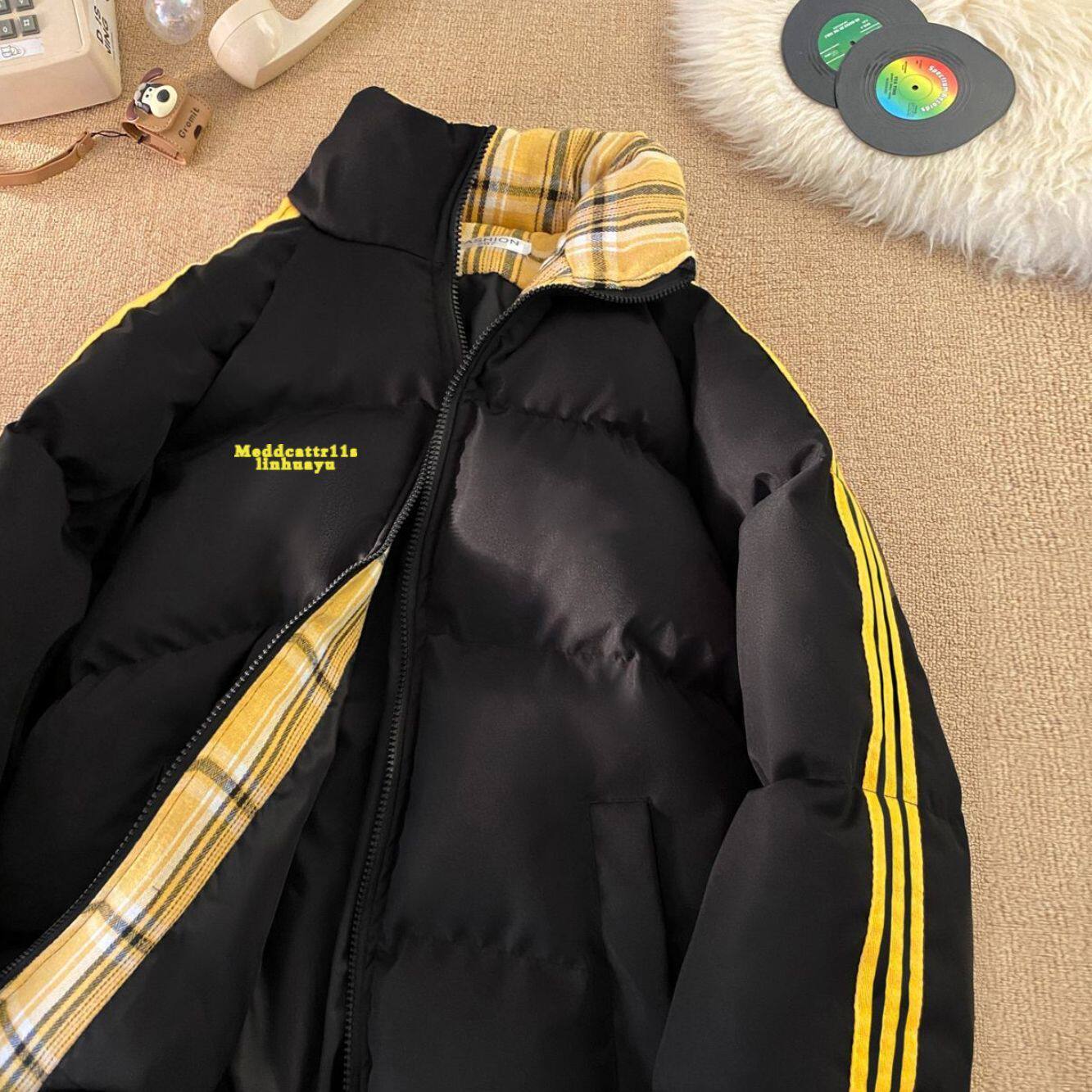 📚 秋冬棉服棉袄中大童拼色三条杠棉服童装字母印花ins风百搭外套女