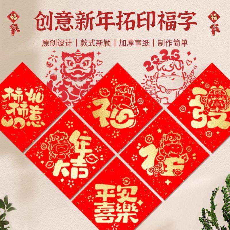 📚 2026新年马年创意福字按压印章贴纸DIY拓印非遗活字雕版年画印刷工具包体验幼儿园元旦春节国风福字材料包