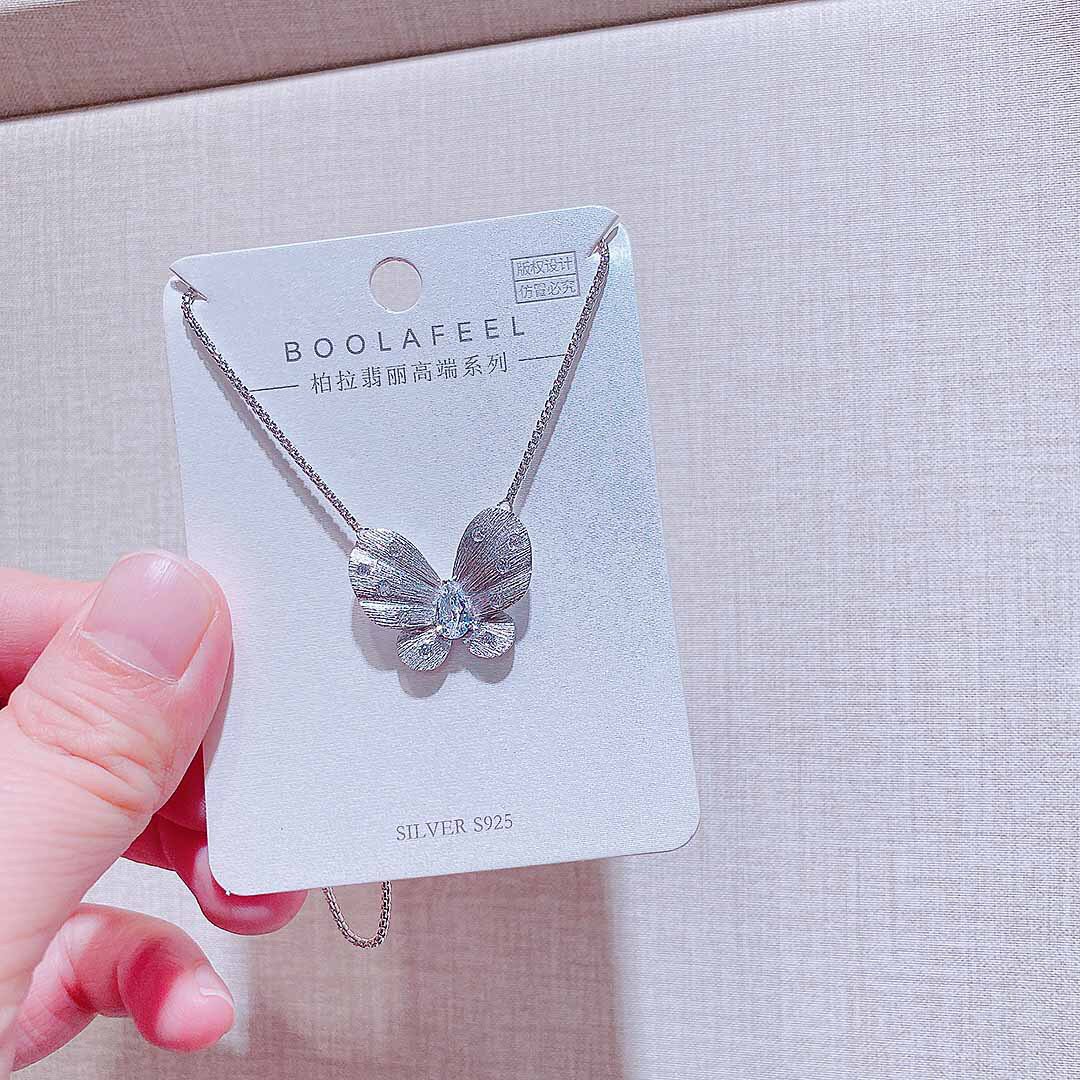 📚 柏拉翡丽轻奢金属拉丝蝴蝶通体纯银项链饰品精致气质高级感锁骨链