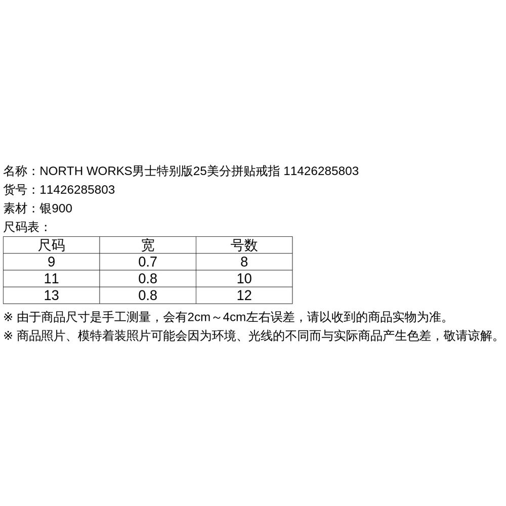 98¥ HU926 XRf2UQY4O1I¥ https://m.tb.cn/h.7G7rQBE 1h可退 日本直邮NORTH WORKS男士特别版25美分拼贴戒指 114262858 --------------------- 【原售价】2,309元 【现售价】1,400元。