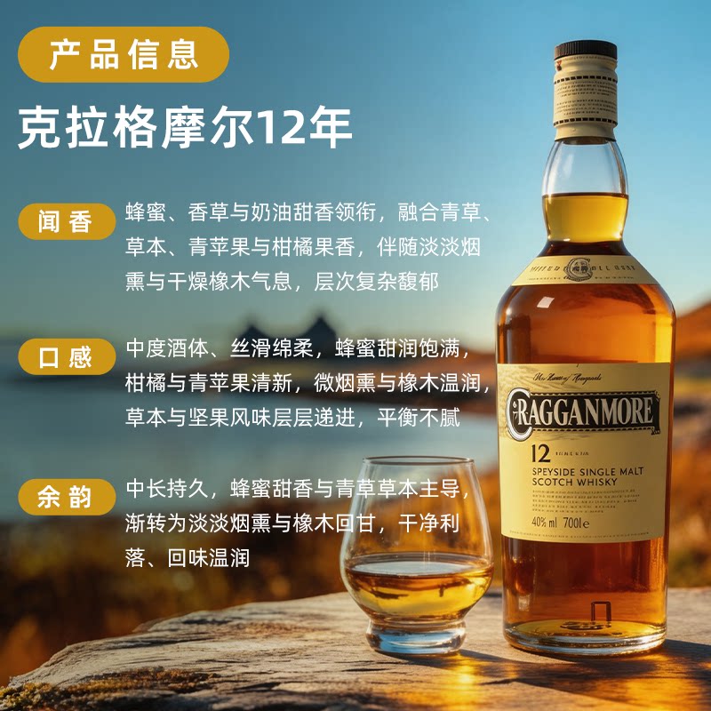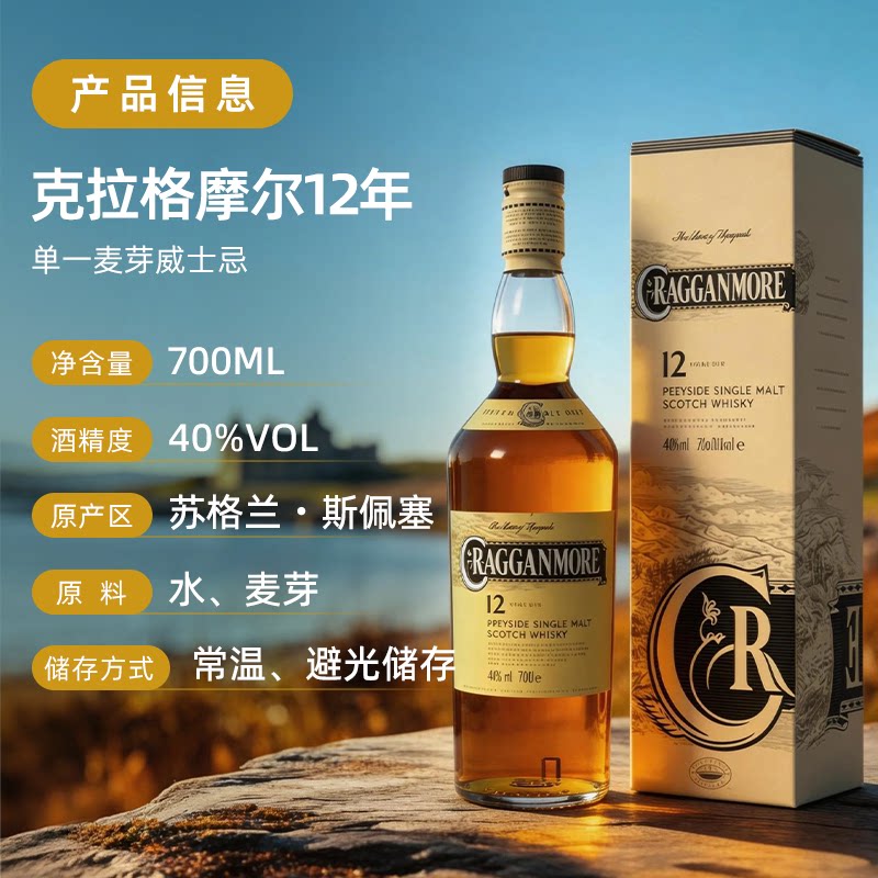 📚 【官方正品】克拉格摩尔12年单一麦芽威士忌英国原瓶进口洋酒基酒