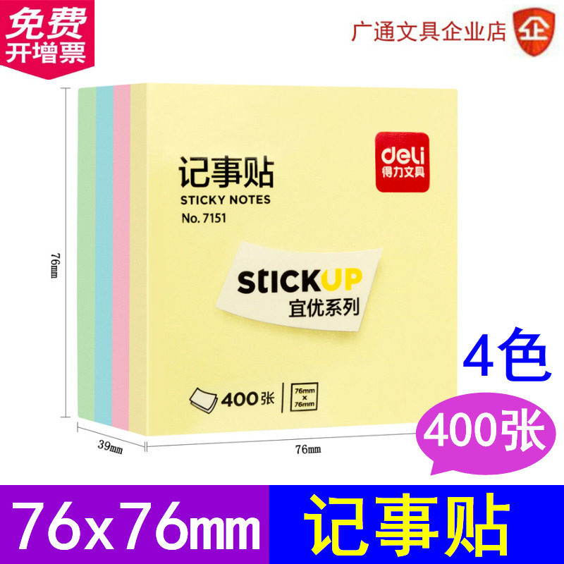📚 得力7151彩色贴粘性便利贴告示贴N次贴即时留言贴易事贴便条