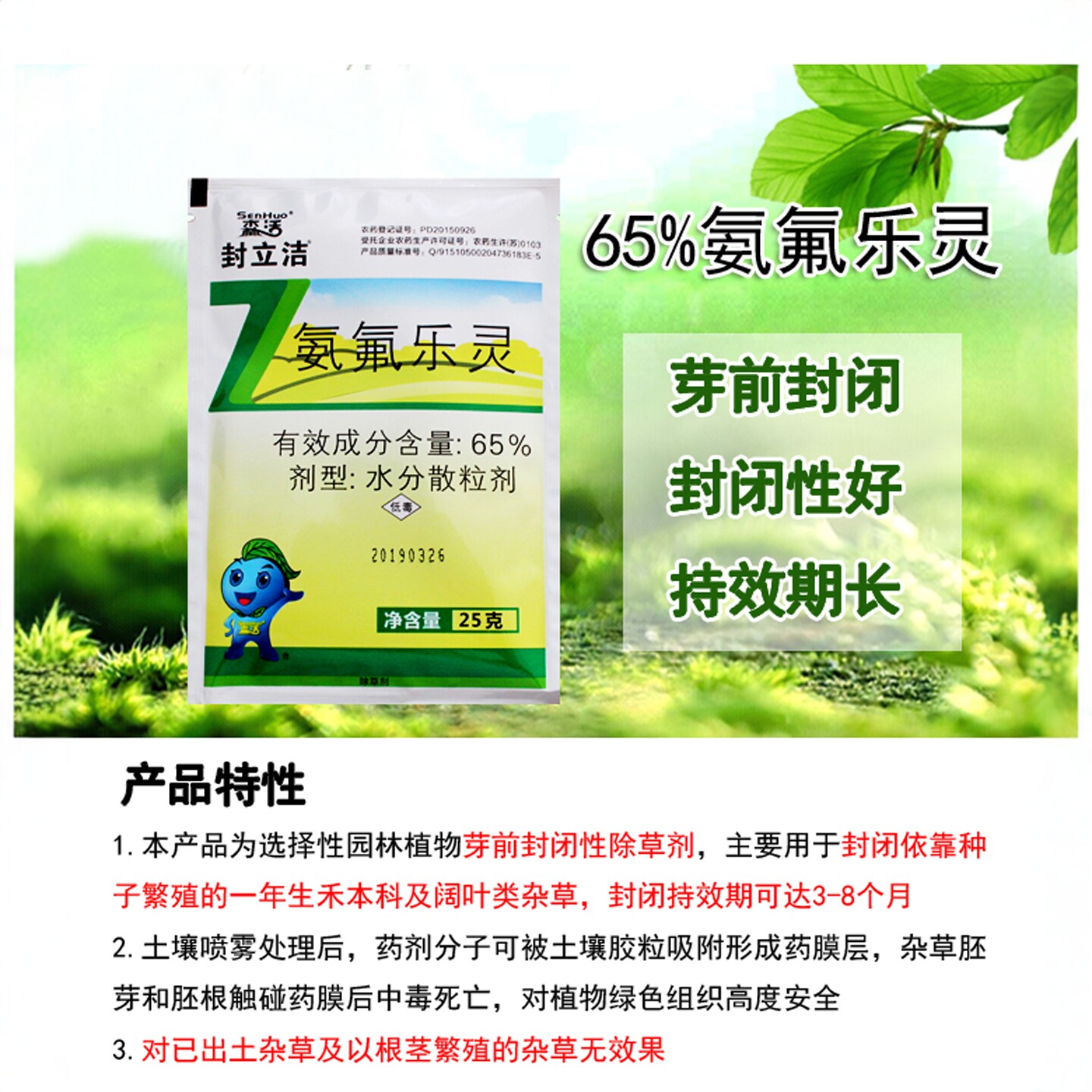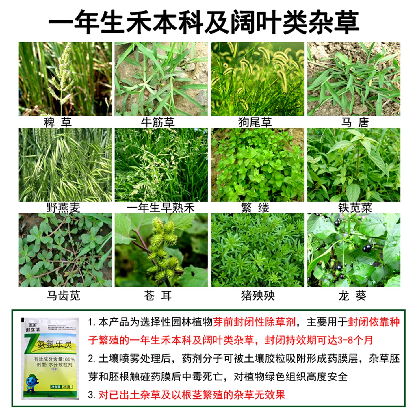📚 森活封立洁氨氟乐灵除草剂杂草种子芽前封闭神器院子草坪花园农药