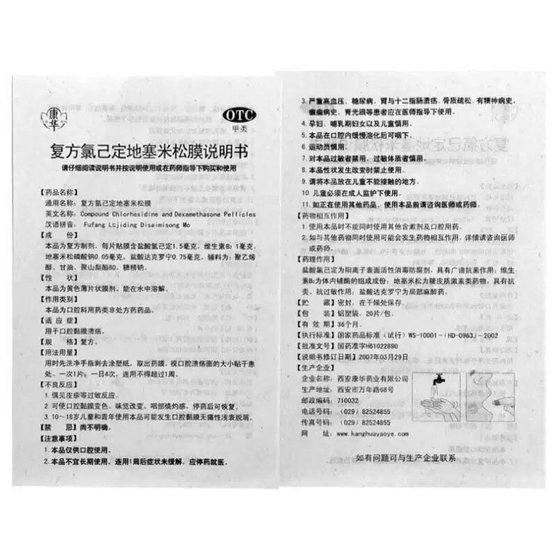 📚 20片康华 复方氯己定地塞米松膜 口腔粘膜溃疡贴