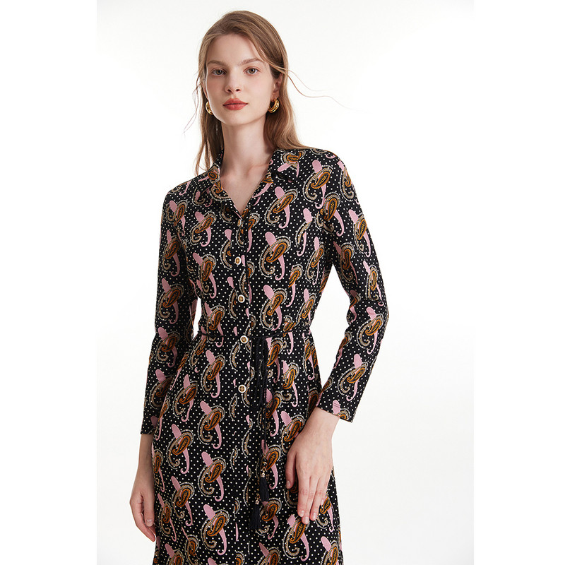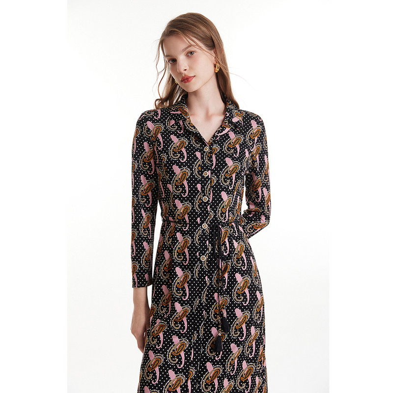开襟中长法式连衣裙印花