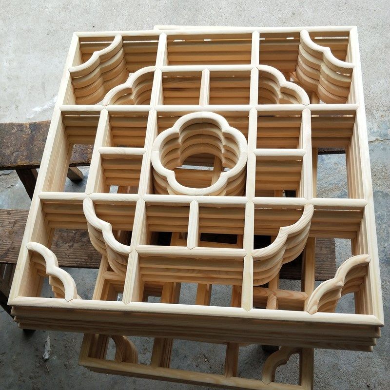 📚 实木花格镂空中式吊顶背景装饰 格栅木雕定制 窗棂花窗正方形木格