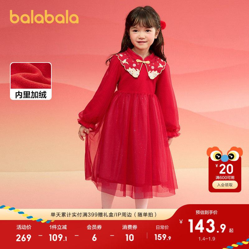 巴拉秋装红色女童连衣裙