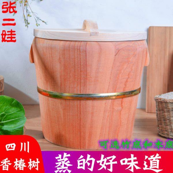 📚 香椿树蒸饭木桶煮饭木桶饭木甑子蒸子家用大小号杉木竹底木底蒸笼