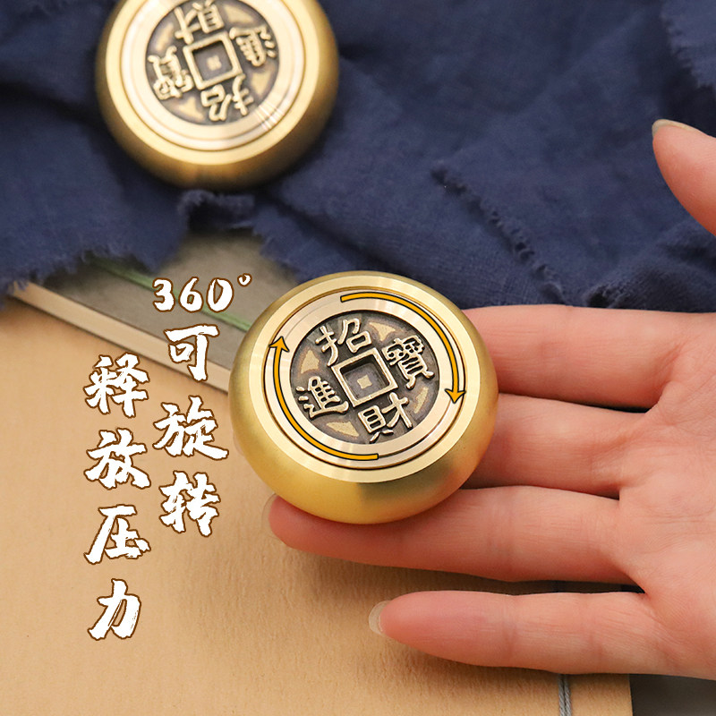 📚 纯黄铜马上胡手把件摆件旋转解压男士招财进宝时来运转赚钱文玩