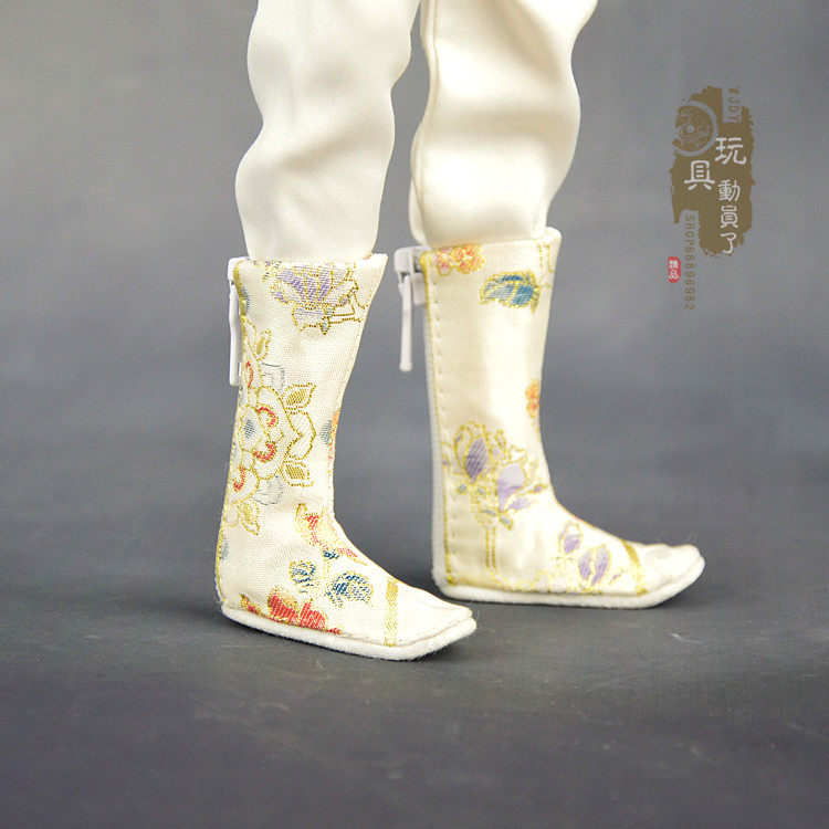 📚 1/6古代女兵人长靴6分人偶古装翘头鞋12寸女娃鞋子织锦金丝靴子