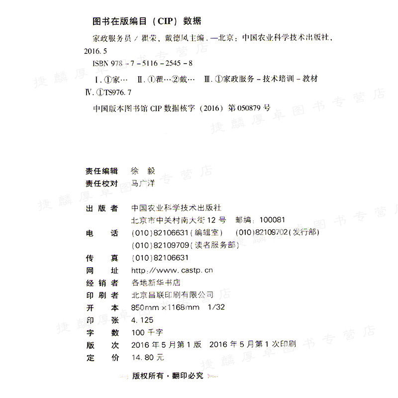 📚 家政服务员(职业技能培训教材) 瞿荣,戴德凤 主编 9787511625458 中国农业科学技术出版社