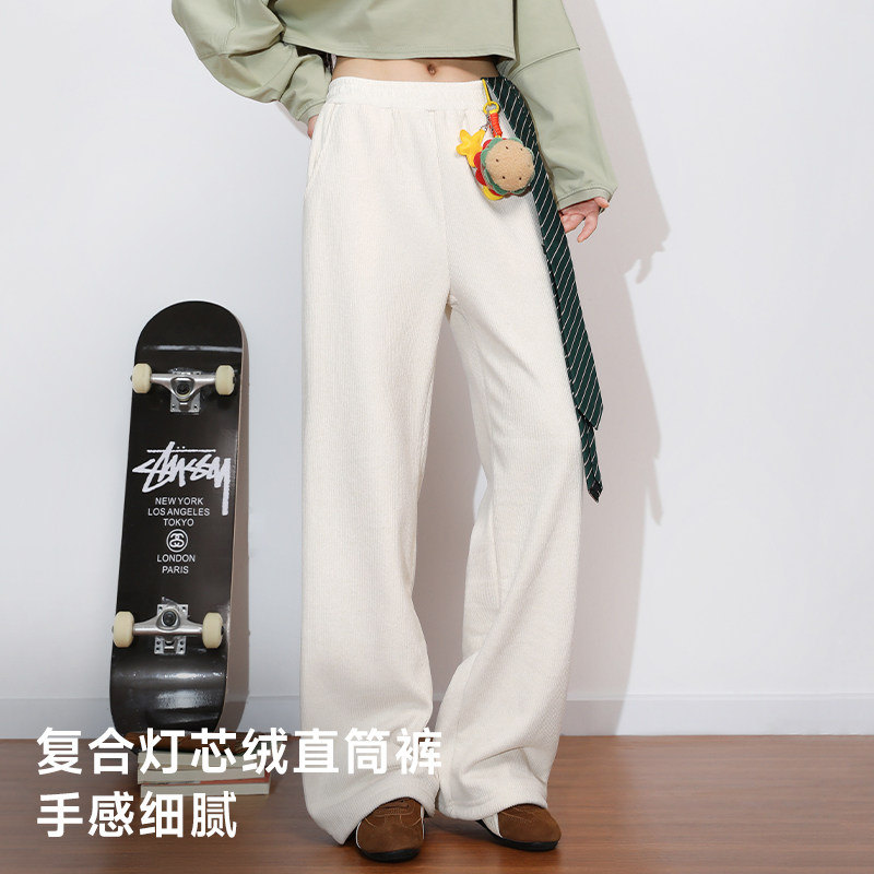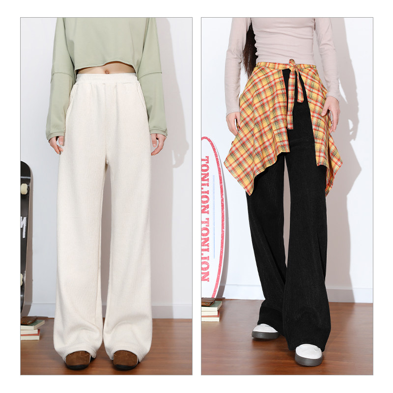 📚 唐狮官方黑色加绒裤子女2026新款冬季女款加厚灯芯绒保暖阔腿裤VB
