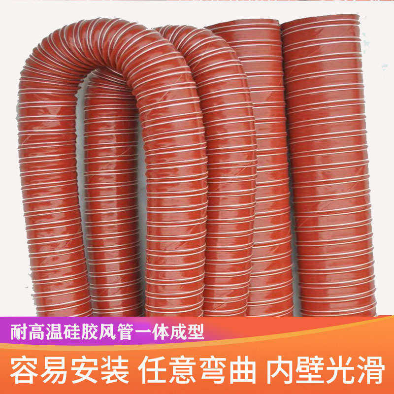 📚 红色耐高温硅胶软管矽胶硫化风管耐热300度螺旋热风管排气通风管