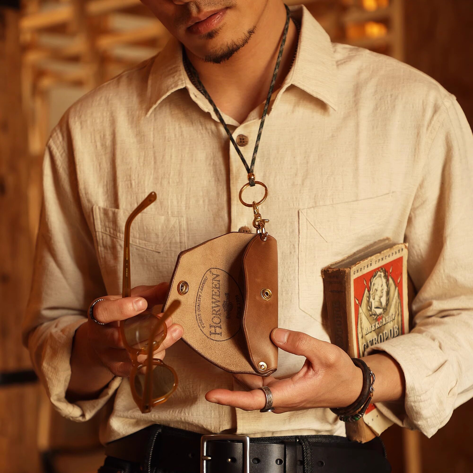 📚 手工制作 美国horween cxl霍尔文皮美式复古户外眼镜收纳盒墨镜包