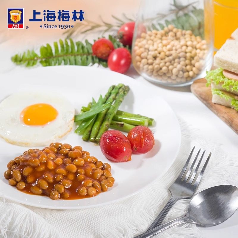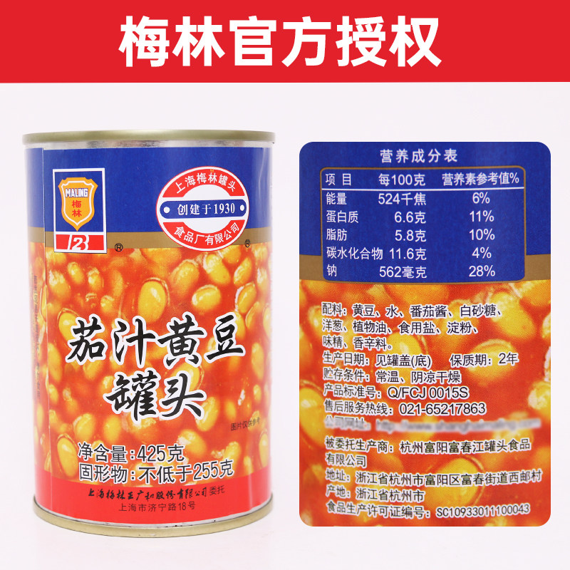 📚 梅林茄汁黄豆罐头425g*5罐装即食香焖番茄黄豆茄汁罐头方便下饭菜