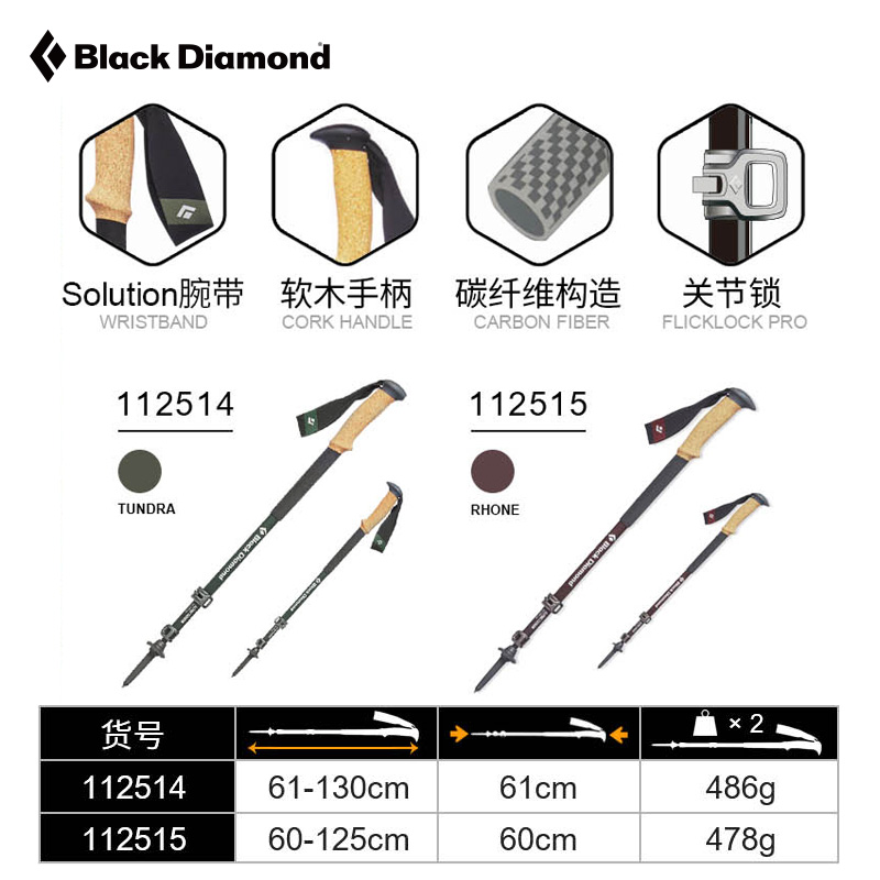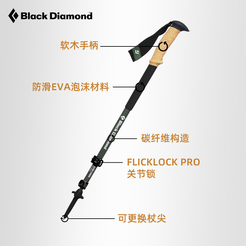 📚 blackdiamond黑钻伸缩登山手杖超轻碳素拐杖户外爬山徒步杖112514