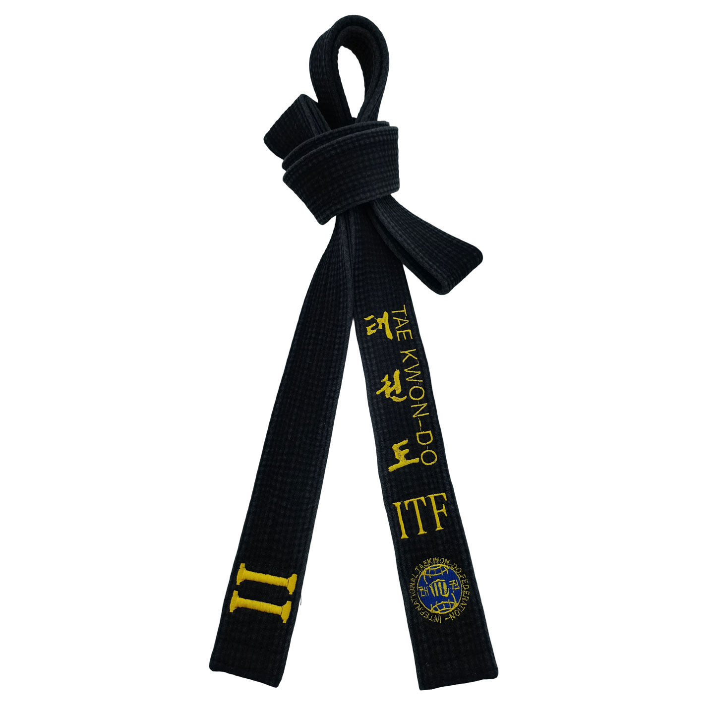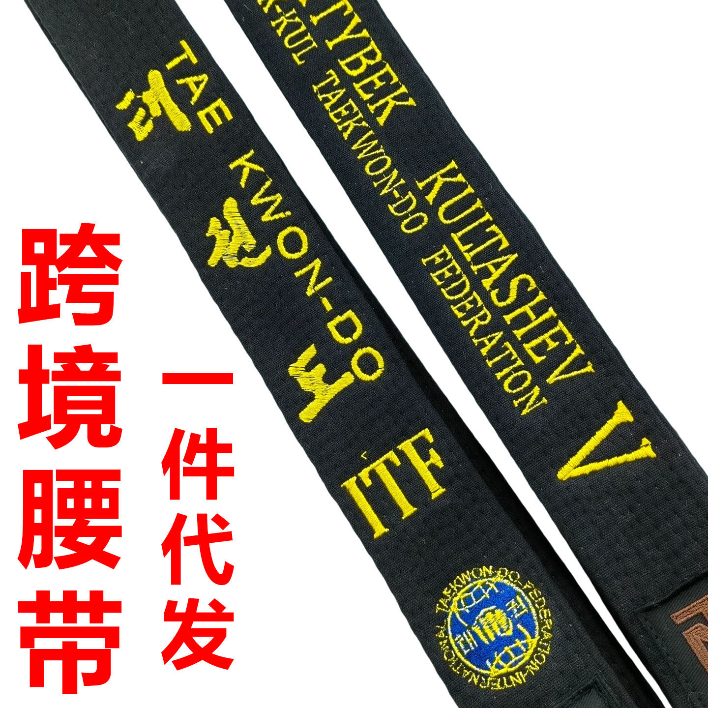 📚 ITF国际跆拳道黑带鸣谦纯棉水洗绣字刺绣腰带大师道带5cm段位定制