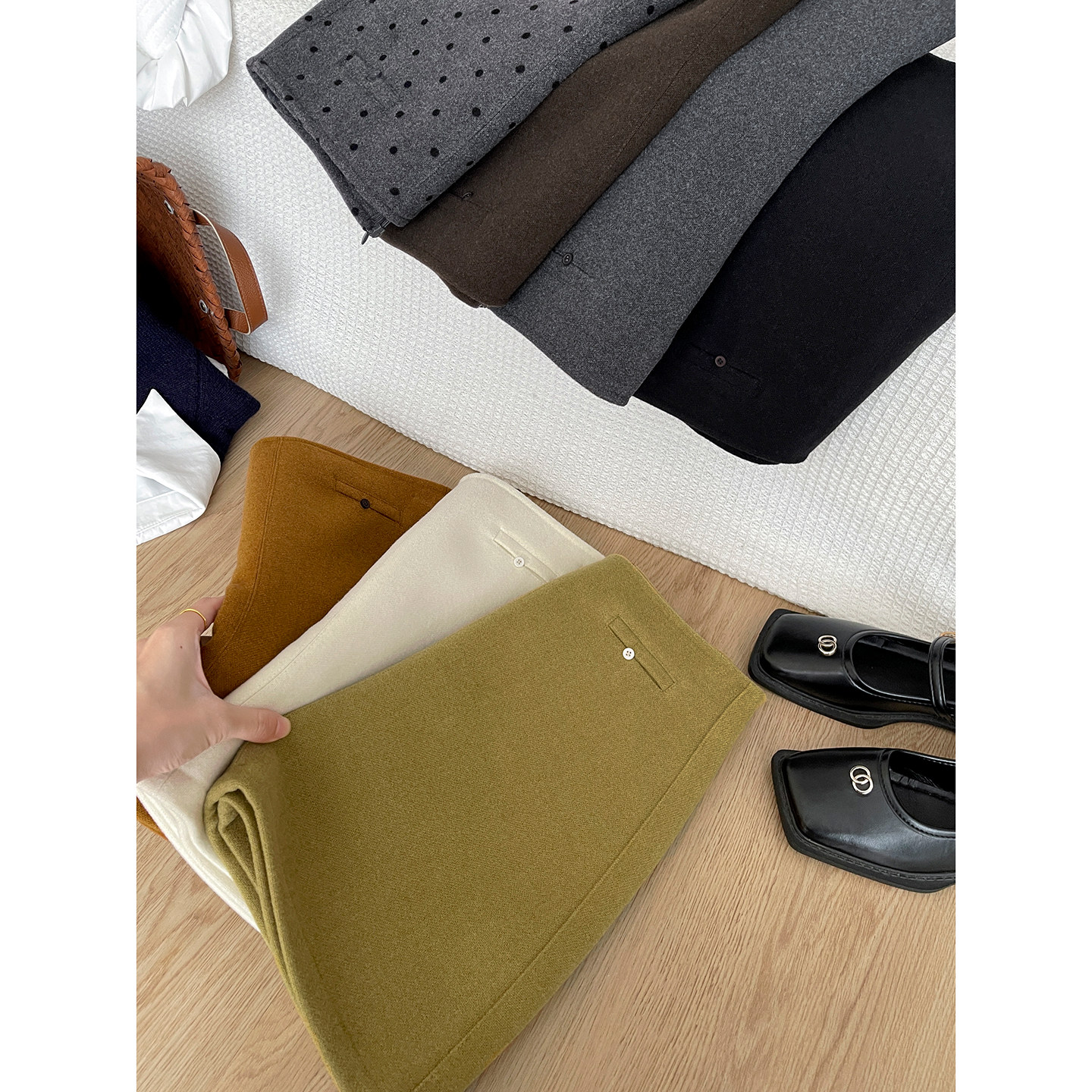📚 韩国chic羊绒毛呢料西装短裙女秋冬洋气包臀波点A字百搭半身裙子