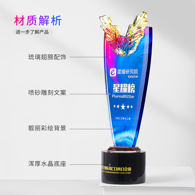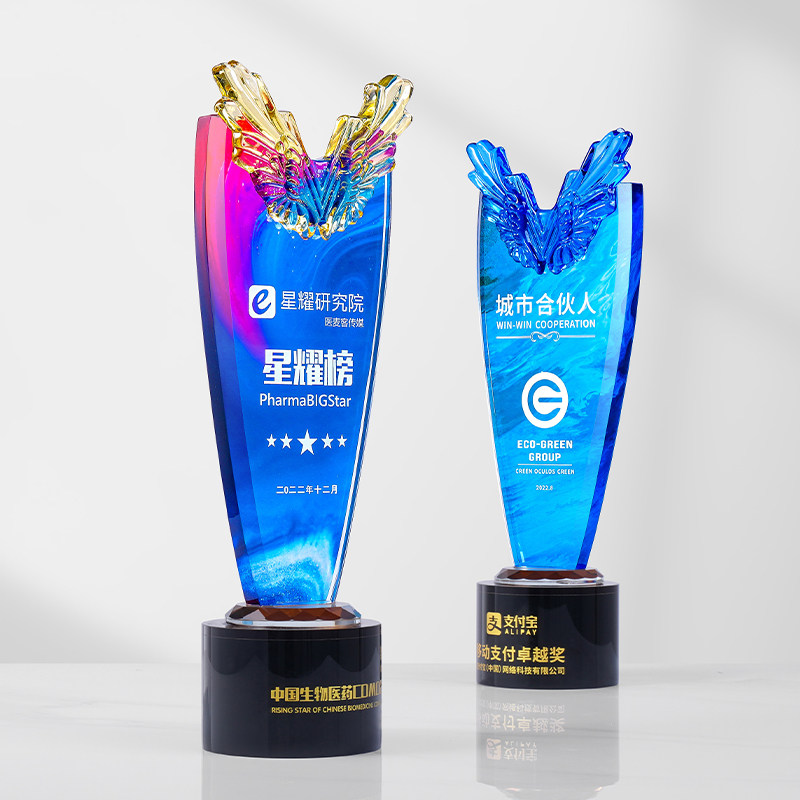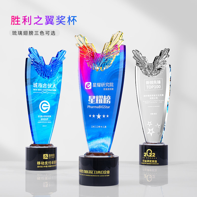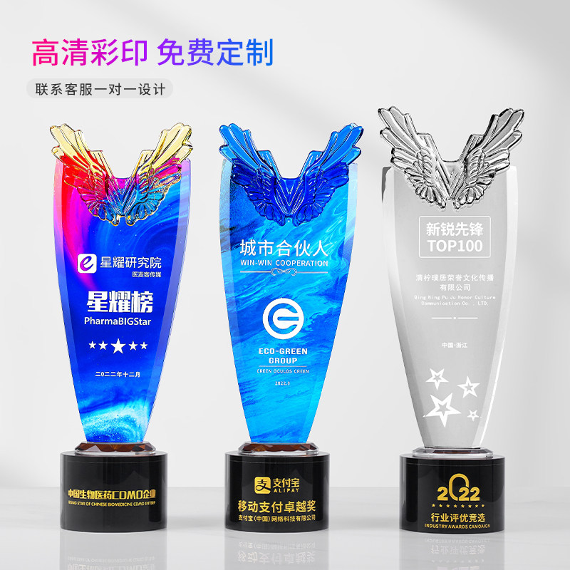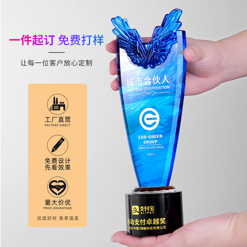 📚 创意水晶奖杯定制优秀员工纪念品定做公司年会订制高档大气琉璃杯