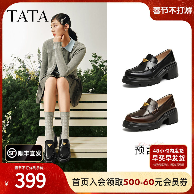 📚 TATA他她言家乐福鞋女2025款厚底羊皮英伦风小皮鞋子7GZ21AA5D
