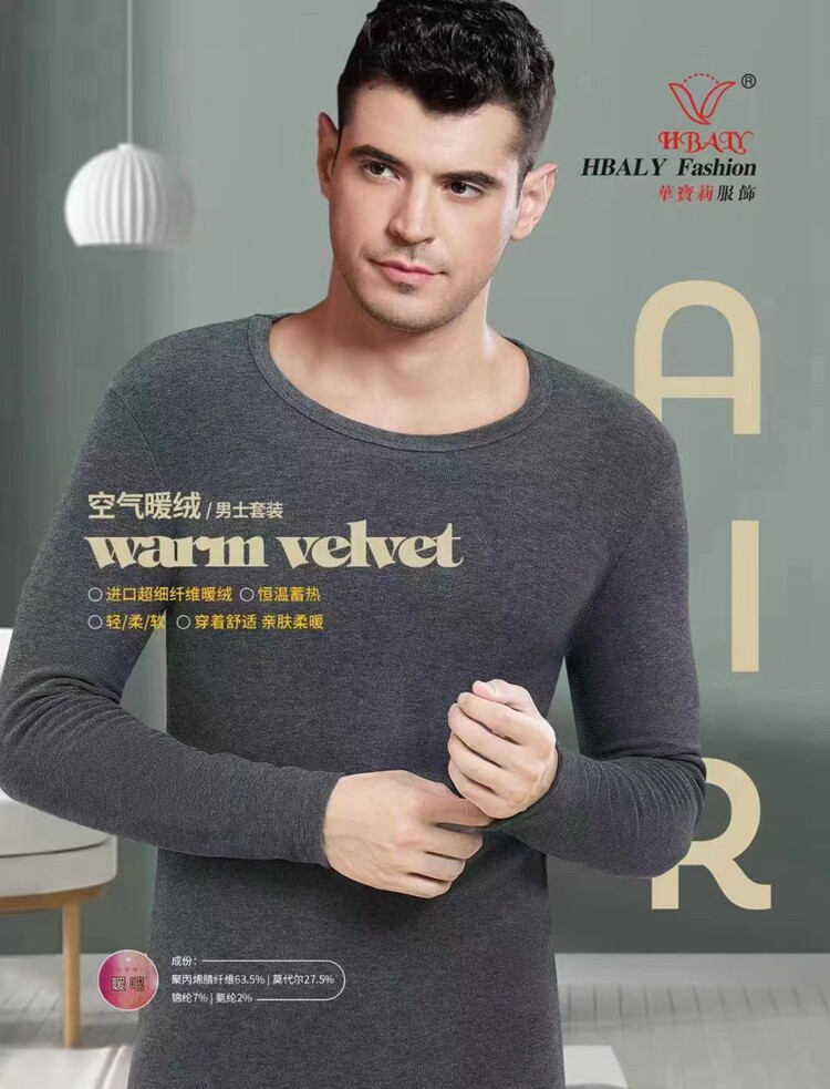 📚 华宝莉空气暖绒保暖内衣秋冬双面磨毛薄绒德恒温绒款女2828男9668