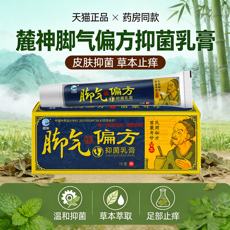 📚 买1送1】麓神脚气偏方抑菌乳膏15g脚臭脚痒止痒脱皮软膏正品