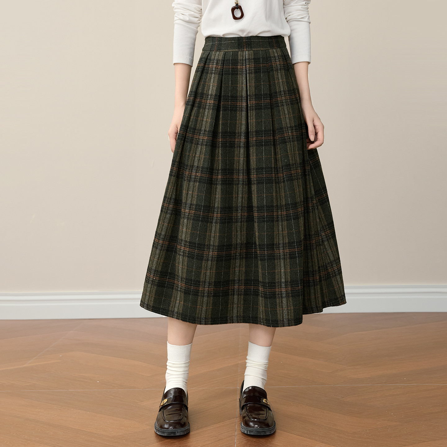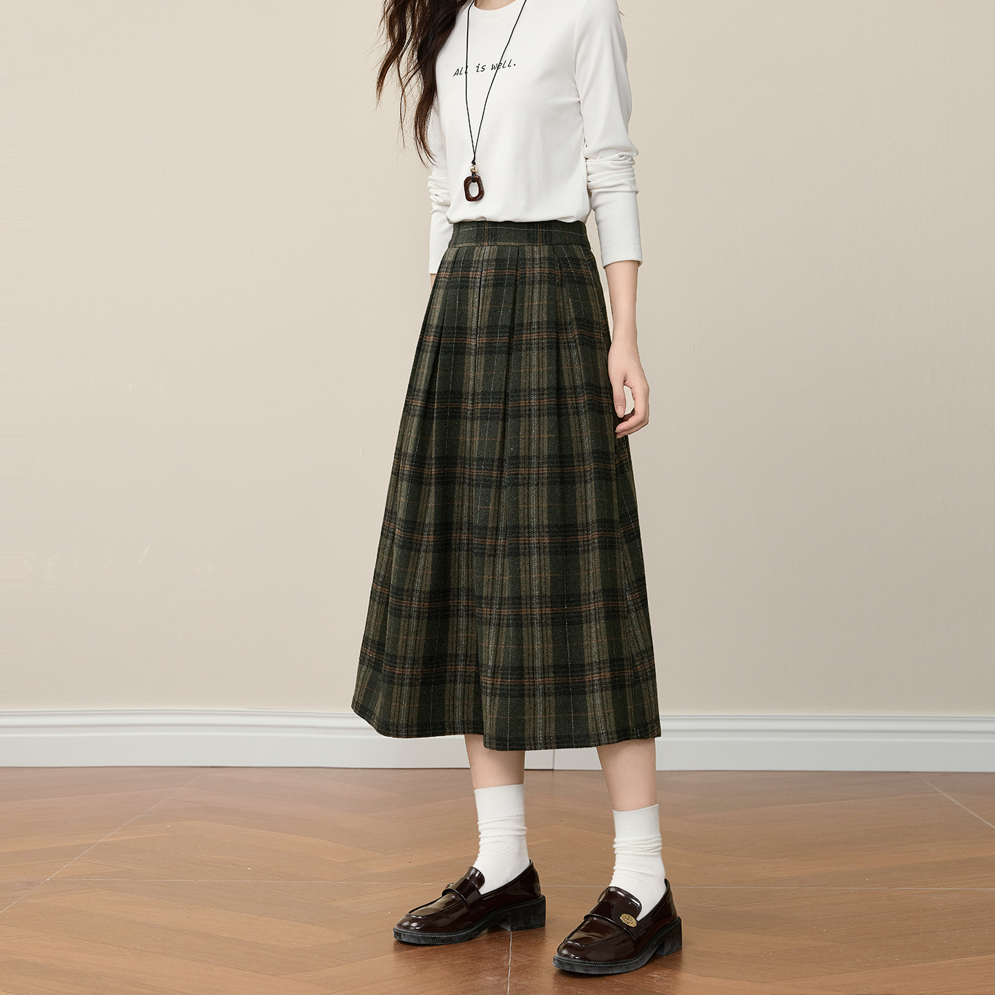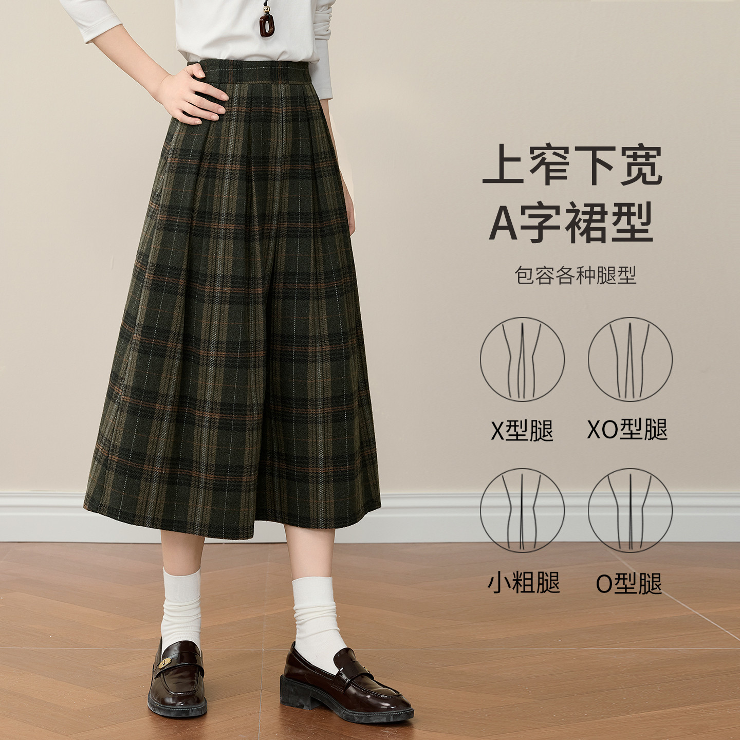 📚 熙世界复古格纹毛呢半身裙女秋冬高腰宽松梨形伯克利a字中长裙子
