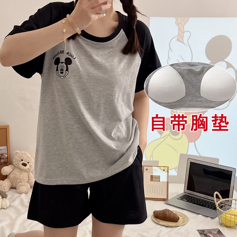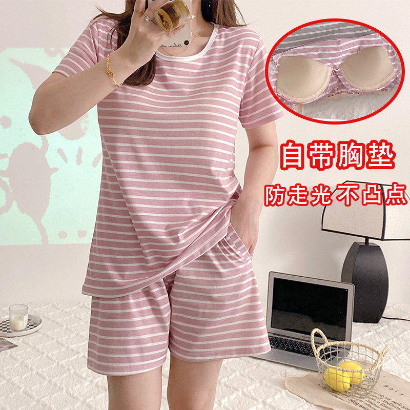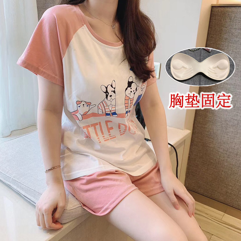 📚 睡衣女夏季棉带胸垫一体可爱外穿短袖短裤学生宿舍宽松休闲家居服