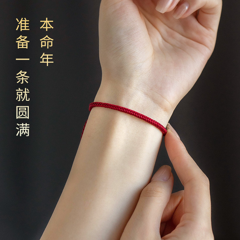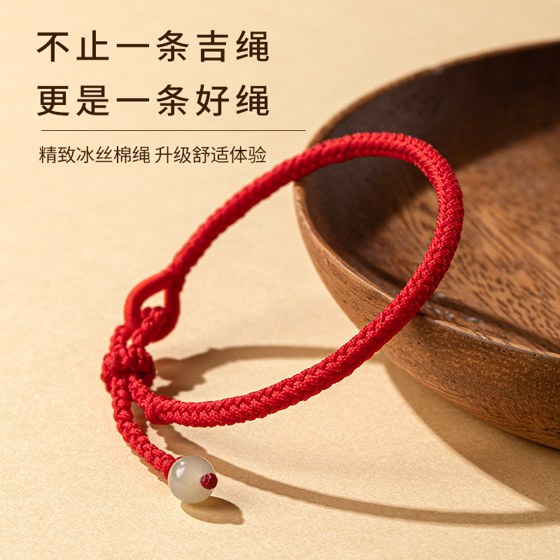 📚 红绳手链女款情侣和田玉转运珠本命年红手绳亲子儿童脚链编织绳子