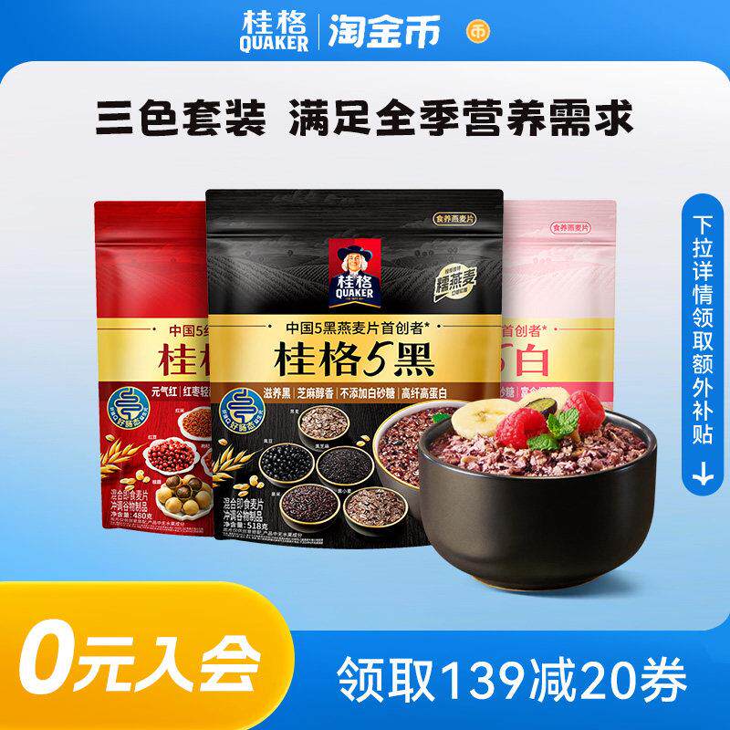📚 【淘金币】桂格五黑五白五红冲饮麦片黑芝麻饱腹速食即食早餐