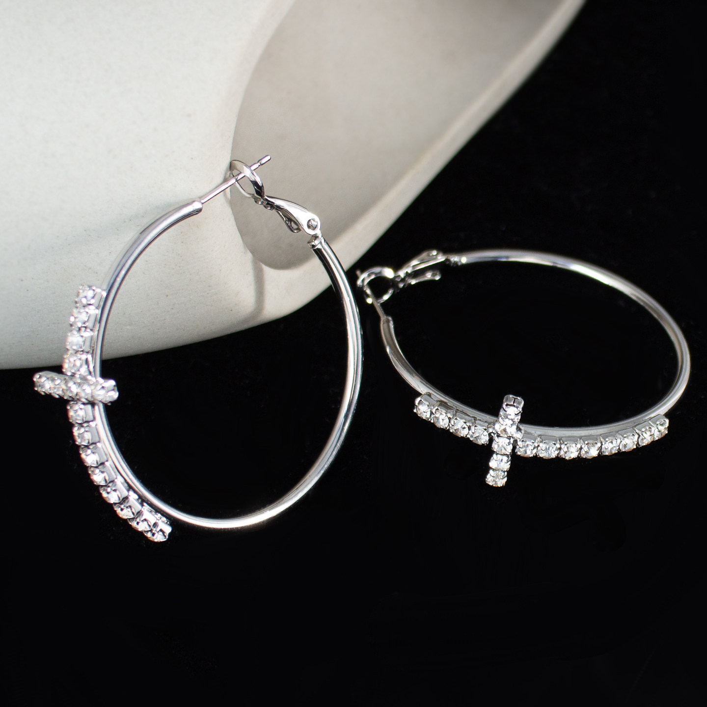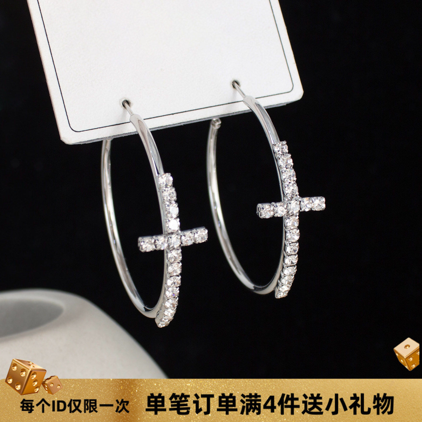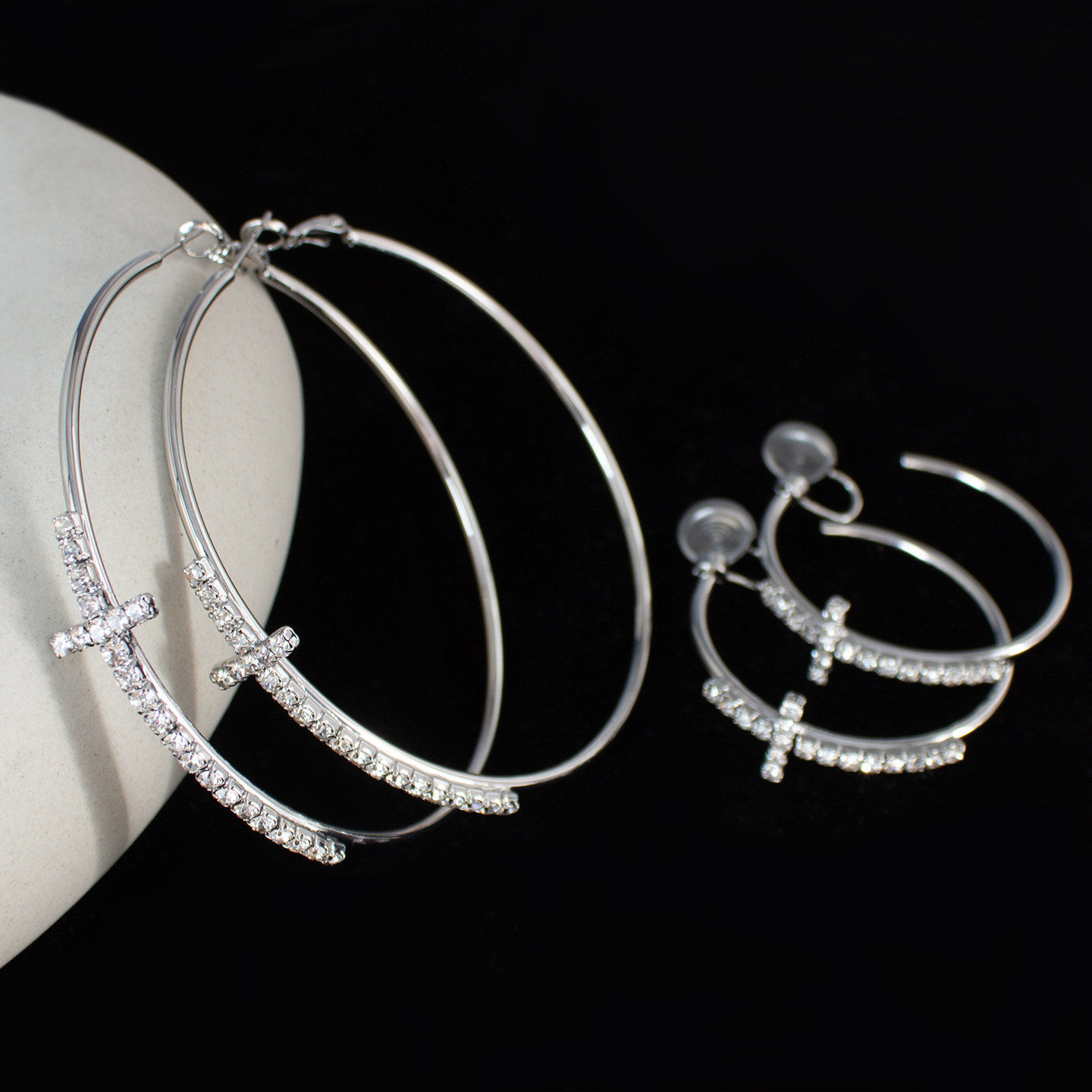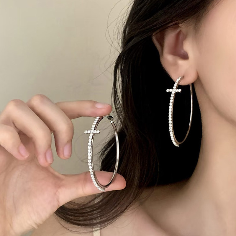 📚 十字架大圈圈耳环夸张气质素圈耳饰辣妹闪钻耳圈蚊香盘耳夹无耳洞
