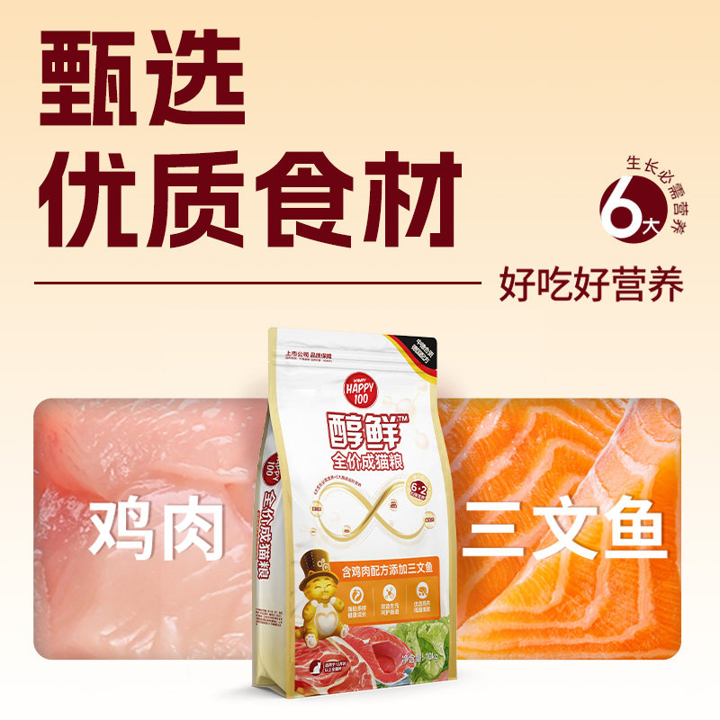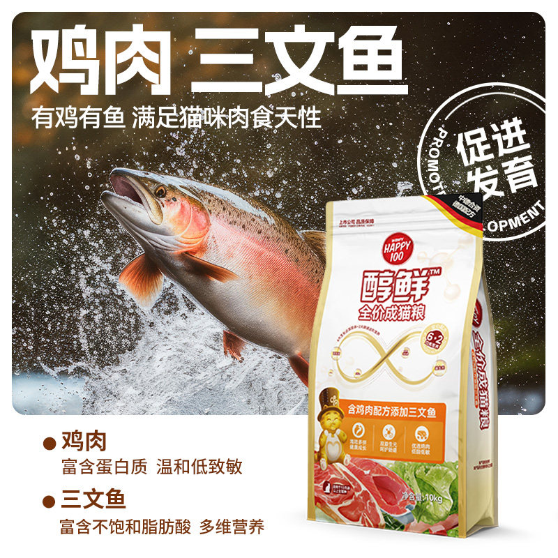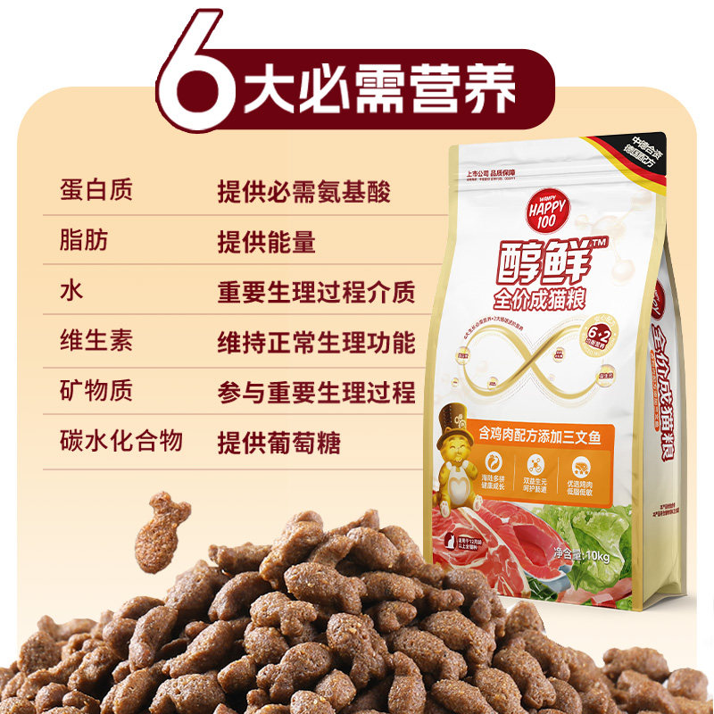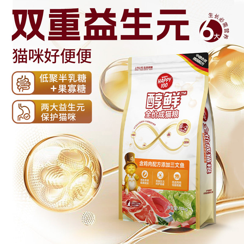 📚 顽皮Happy100醇鲜粮猫粮流浪猫救助10kg8kg全价猫粮成猫幼猫通用