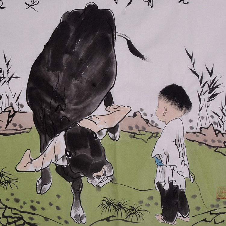 📚 名家范曾字画手绘国画祖孙乐牧牛餐厅卧室现代装饰挂画带防伪证书