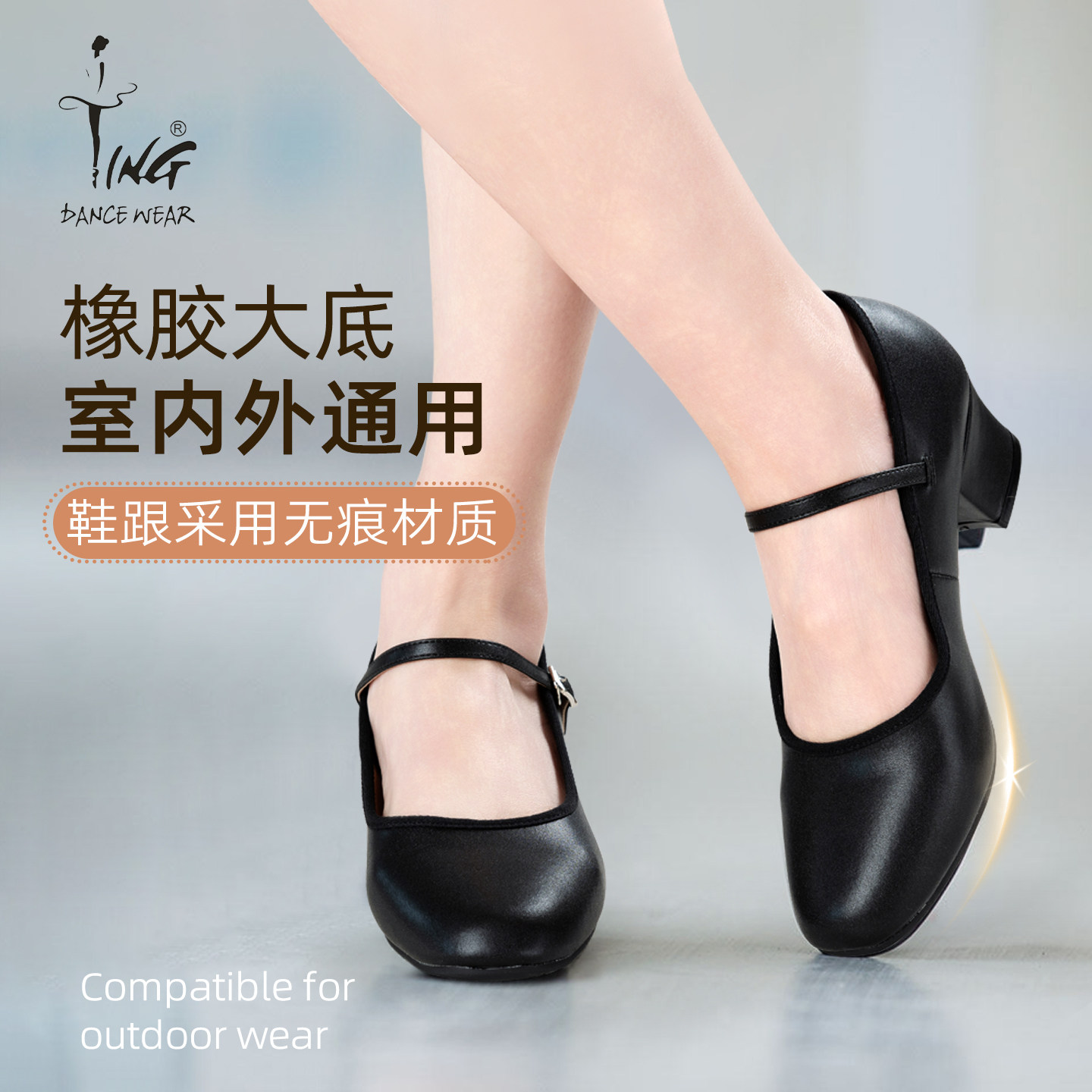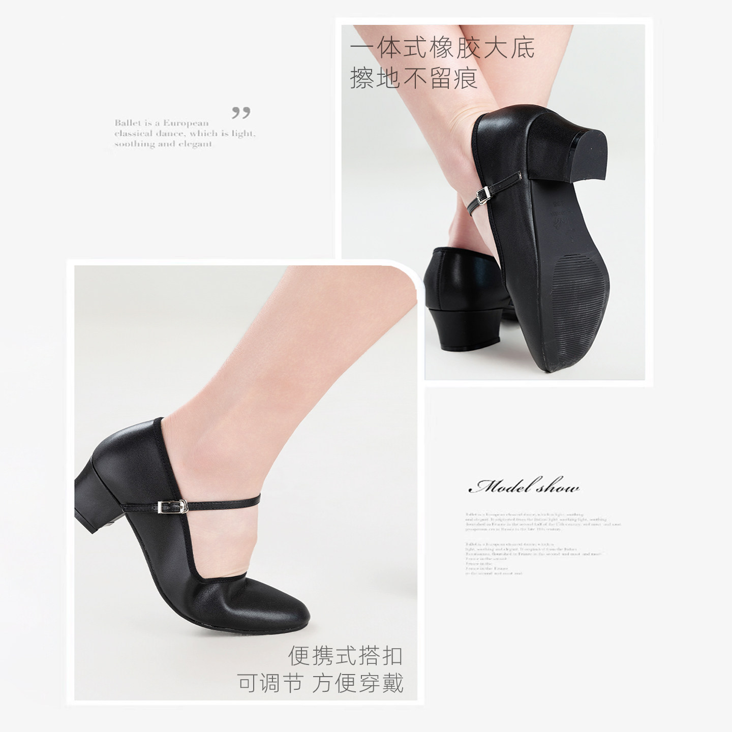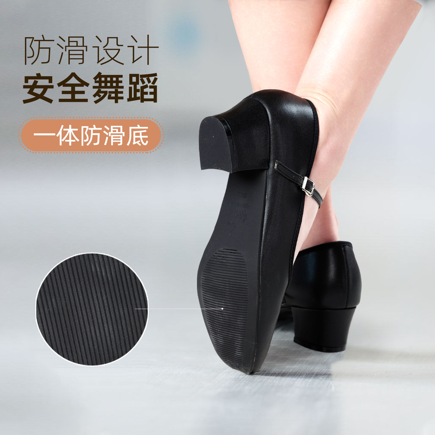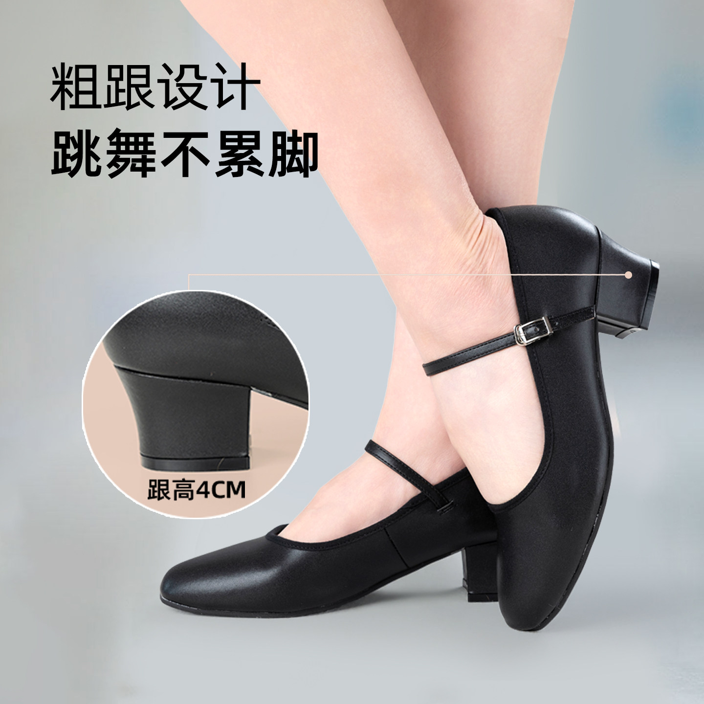 📚 陈婷舞蹈鞋皮性格舞鞋民族民间舞蹈鞋粗中跟黑色跳舞鞋子女成人