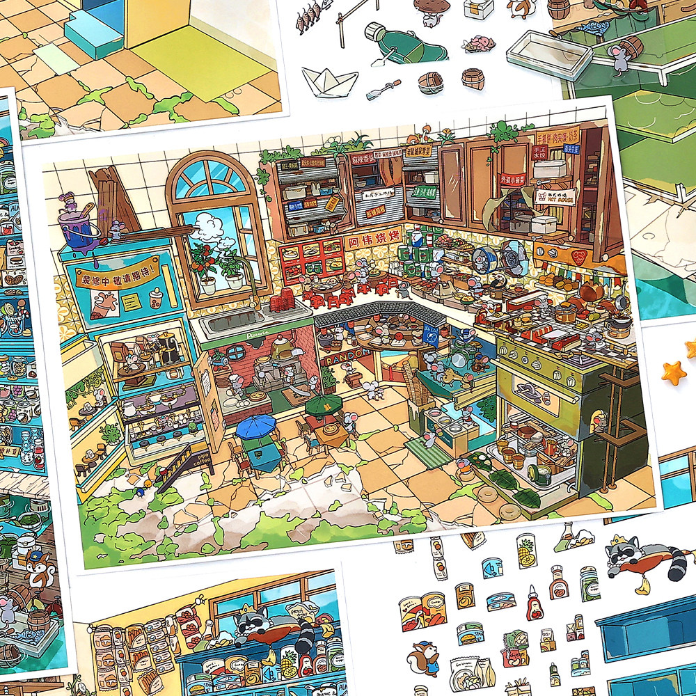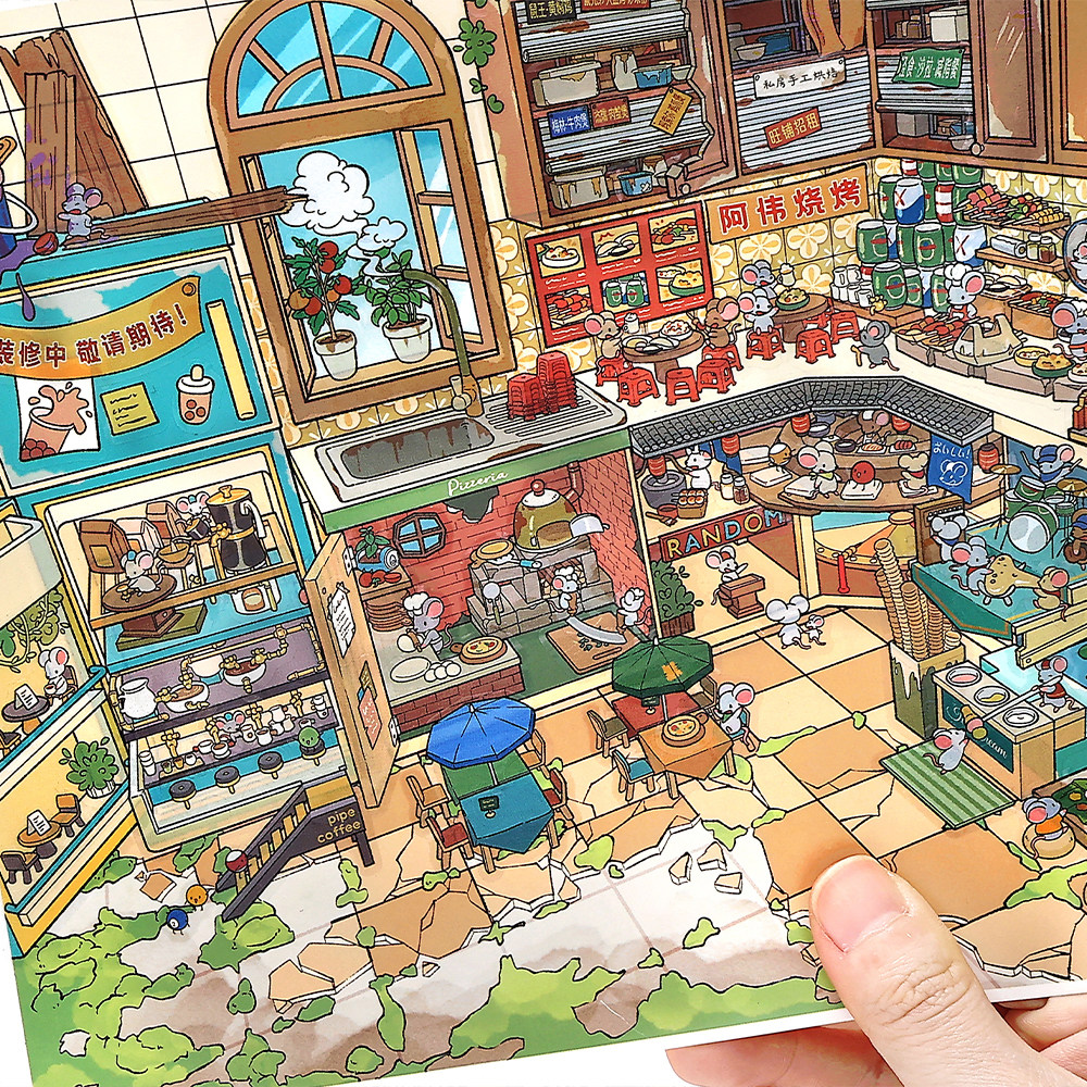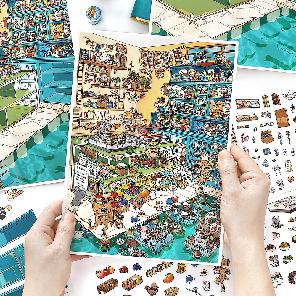 📚 infeelme今日营业中36.0系列造景贴纸鼠鼠美食街高难度3D立体小屋贴画手帐玩具女孩打发时间新年生日礼物